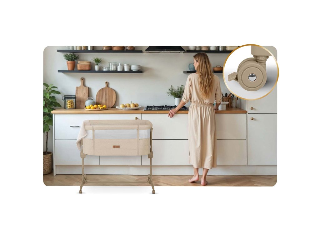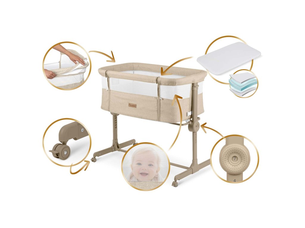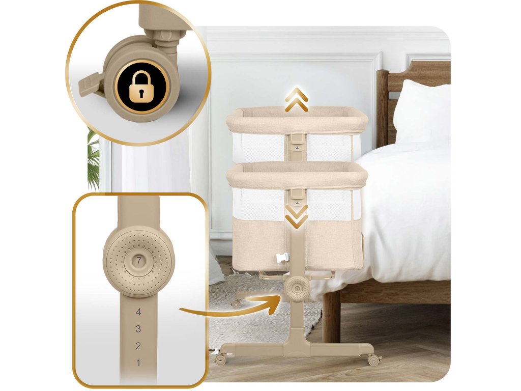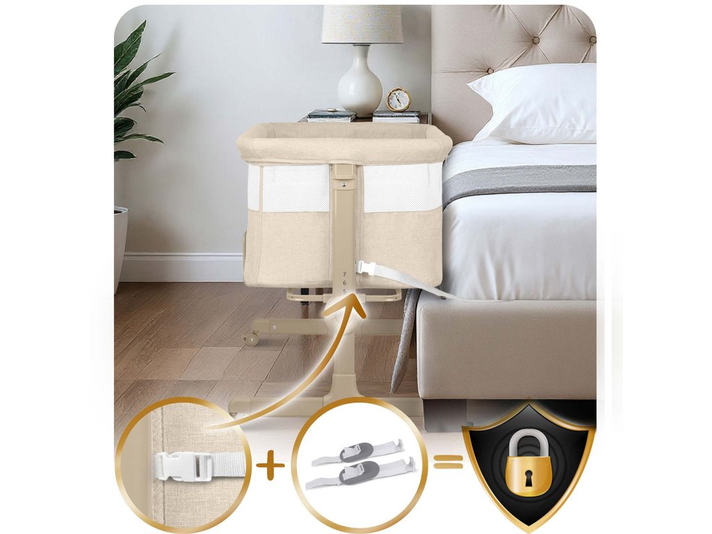 Prístelka umožňuje matke ľahké kŕmenie v noci, bez toho, aby ste museli vstať a presunúť sa do inej miestnosti. Vďaka nastaveniu môžete výšku postieľky ľahko prispôsobiť svojmu matracu.