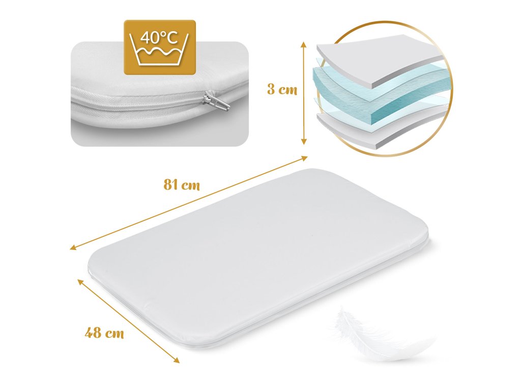 Matrac s rozmermi 81 × 48 cm poskytuje dieťaťu dostatočnú oporu a pohodlie.