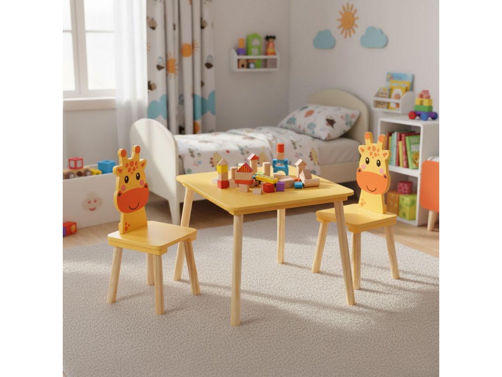 - Súprava: stôl + 2 stoličky s operadlom v tvare žirafy