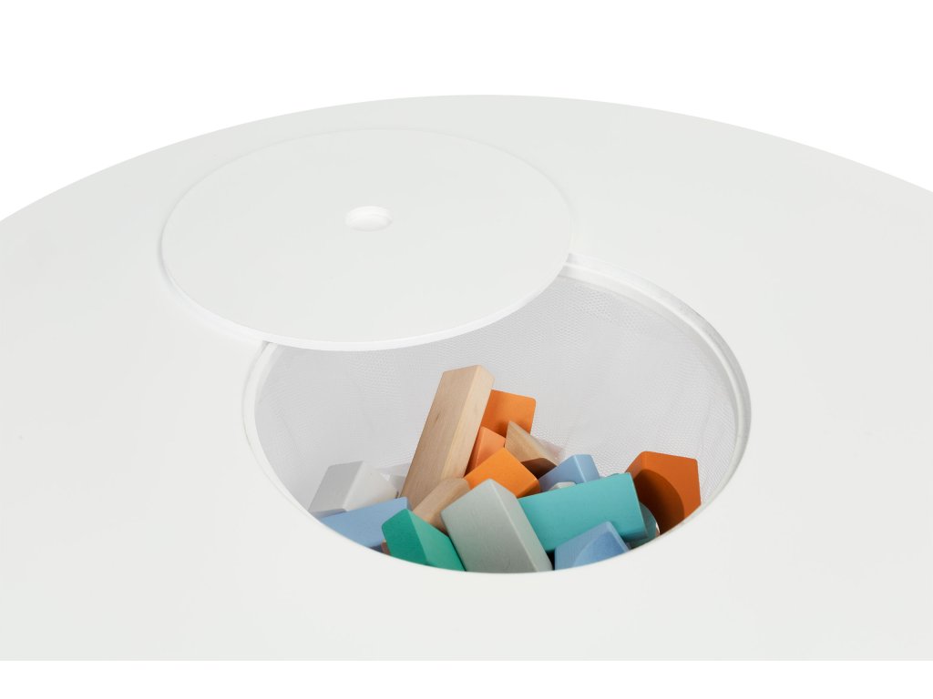 Pod pracovnou doskou sa skrýva organizátor siete, čo pomôže udržať poriadok a rozvíjať návyk upratovania po skončení hry. Skrinka sa dobre hodí aj na rýchlu prípravu večere pre batoľa.