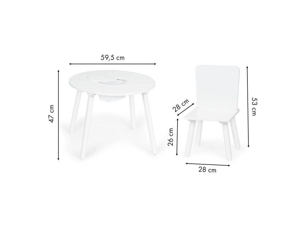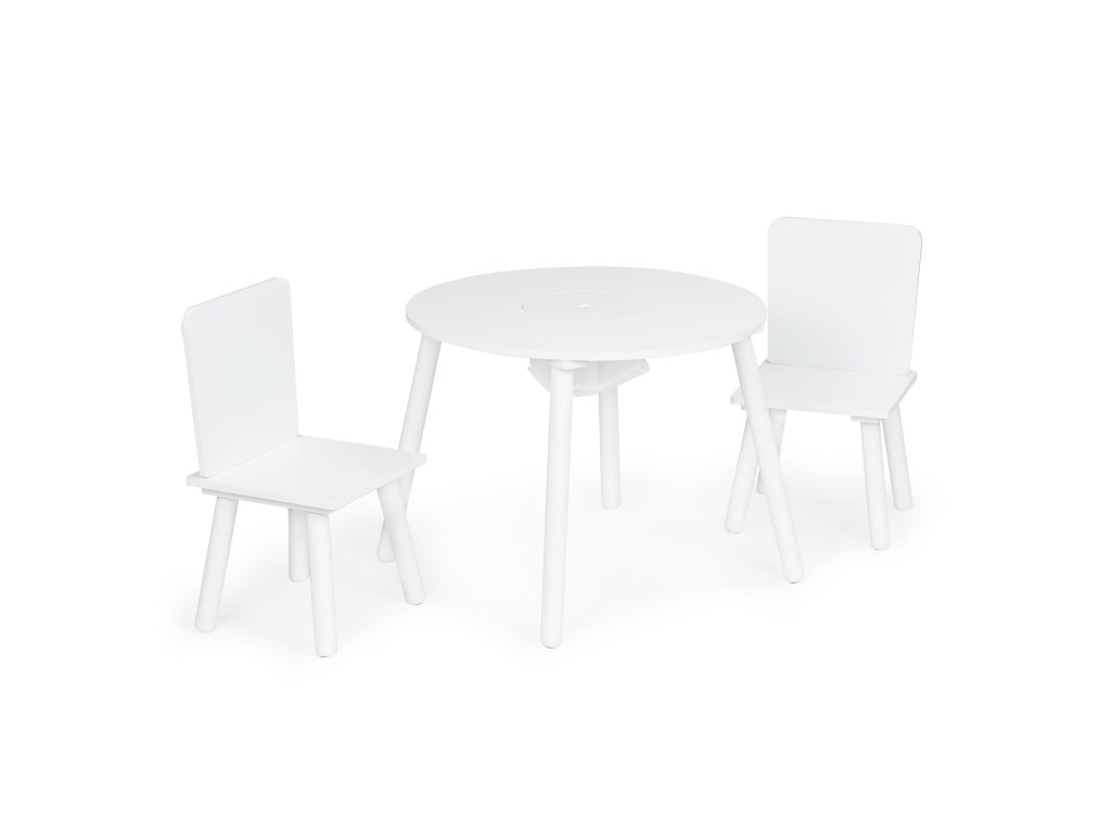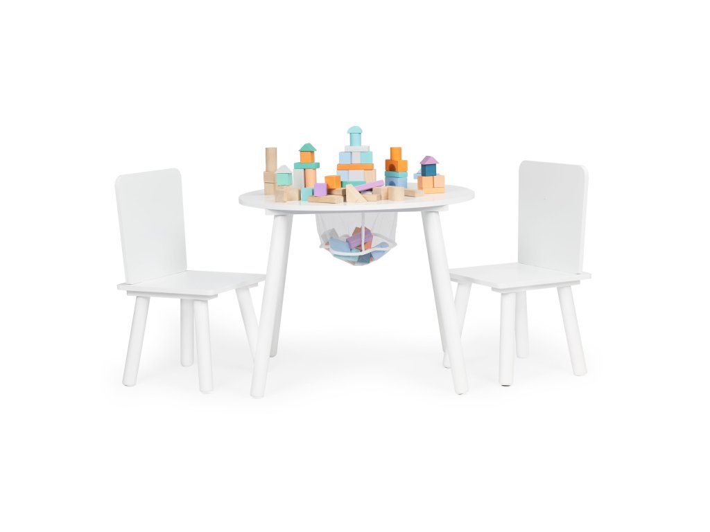 Skvelá súprava pre všetky batoľatá vďaka jednoduchému tvaru dokonale zapadne do interiéru detských izieb, herní alebo čakární. Stôl má masívne borovicové nohy, ktoré mu dodávajú stabilita, vrchná doska je vyrobená z MDF, čo uľahčuje jej údržbu a odolné voči poškodeniu/poškriabaniu. Súpravu dopĺňajú dve stabilné a pohodlné stoličky.