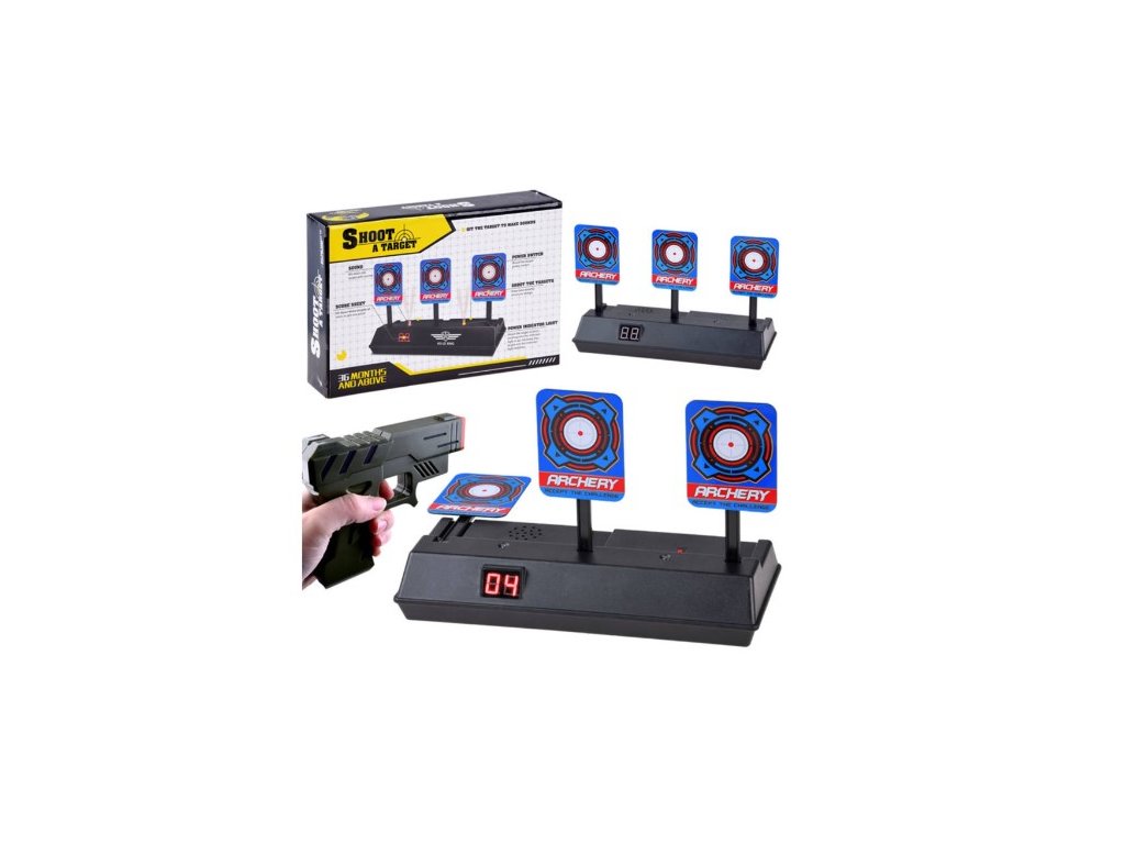 Elektronický terč je fantastický produkt pre každého milovníka NERF. Umožňuje cvičenie na terč bez nutnosti ručného nastavovania terčov. Dieťa si osvojuje zručnosti koordinácie oko-ruka, sústredenie, pretože zostreľovanie terčov si vyžaduje sústredenie.