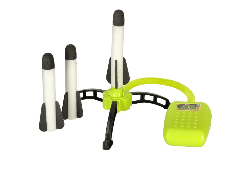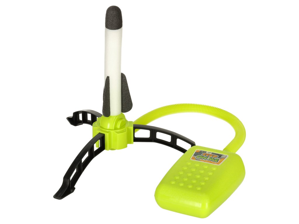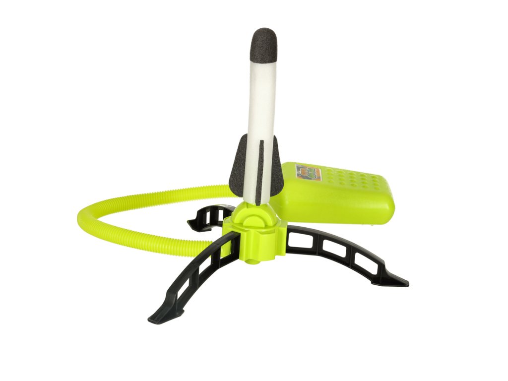 - Nohou stlačte pumpu a sledujte, ako raketa plachtí do vesmíru!