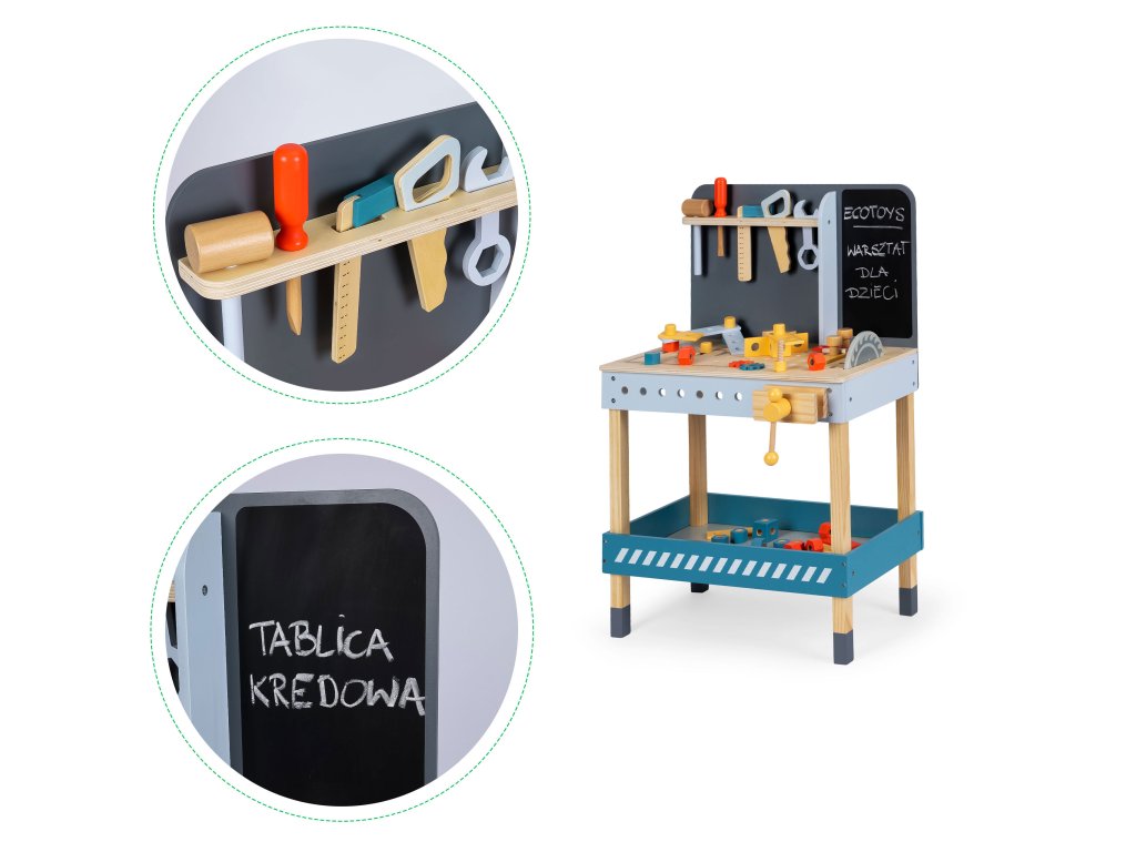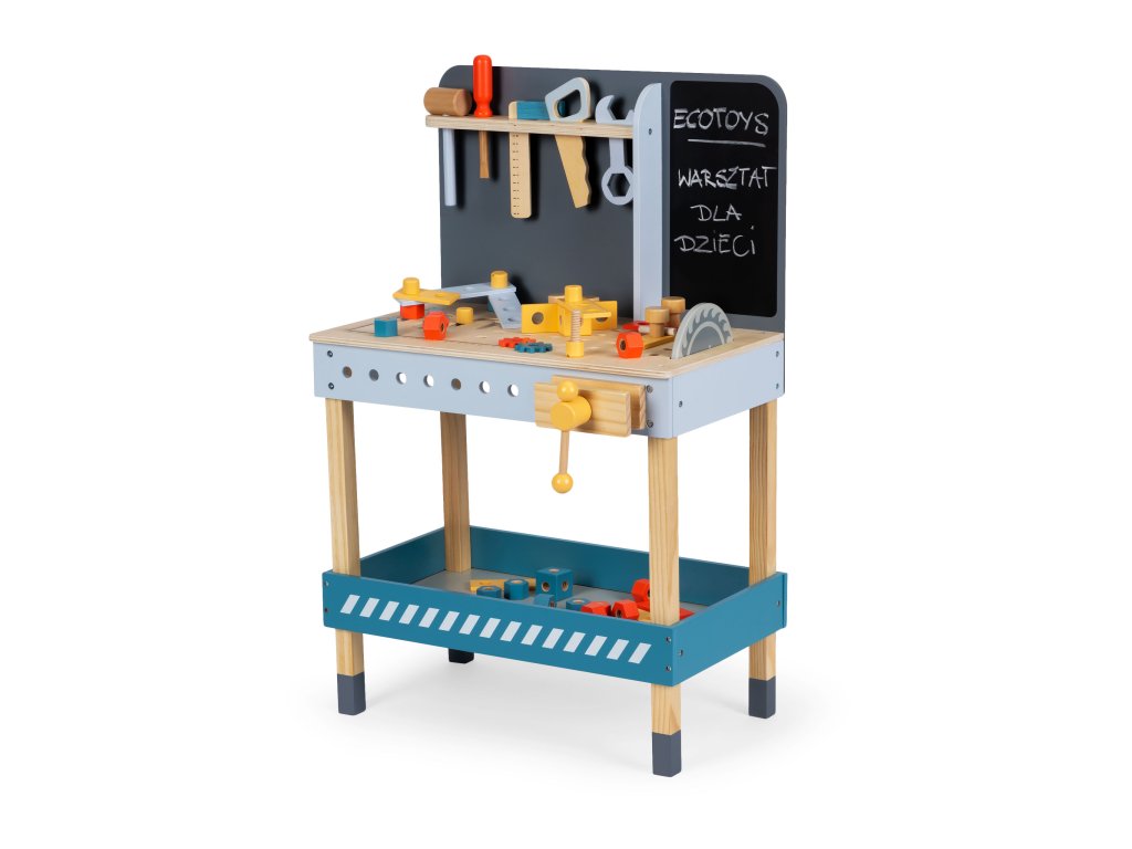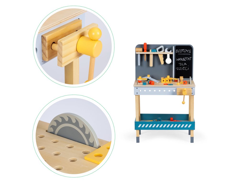 Detský drevený pracovný stôl s náradím 47 dielov ECOTOYS