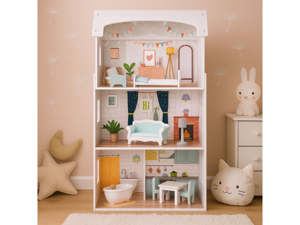 Domček pre bábiky Alice je premyslený návrh, ktorý spájakrásny dizajn, vysoká kvalita spracovania a praktické riešenia. Prečo si ho vybrať?