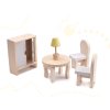 - Nábytok (2x stoličky, okrúhly stôl; lampa; hojdací koník; skriňa s otváracími dverami; skriňa s digestorom, skriňa s umývadlom; WC)