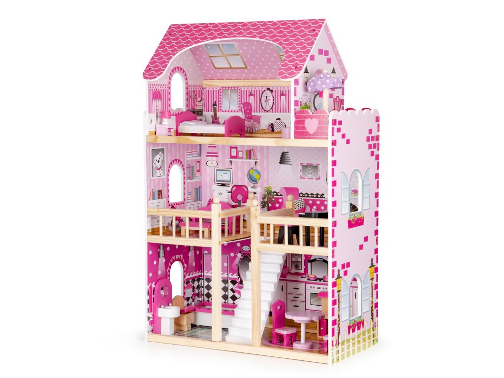 Domček pre bábiky od ECOTOYS vďačí za svoje čaro vhodne zvolenej farebnej schéme a špeciálne navrhnutým izbám. Vďaka tomu je rezidencia bude vyzerať skvele nielen v izbe vášho dieťaťa ale aj v obývacej izbe a potešila všetkých v dome.