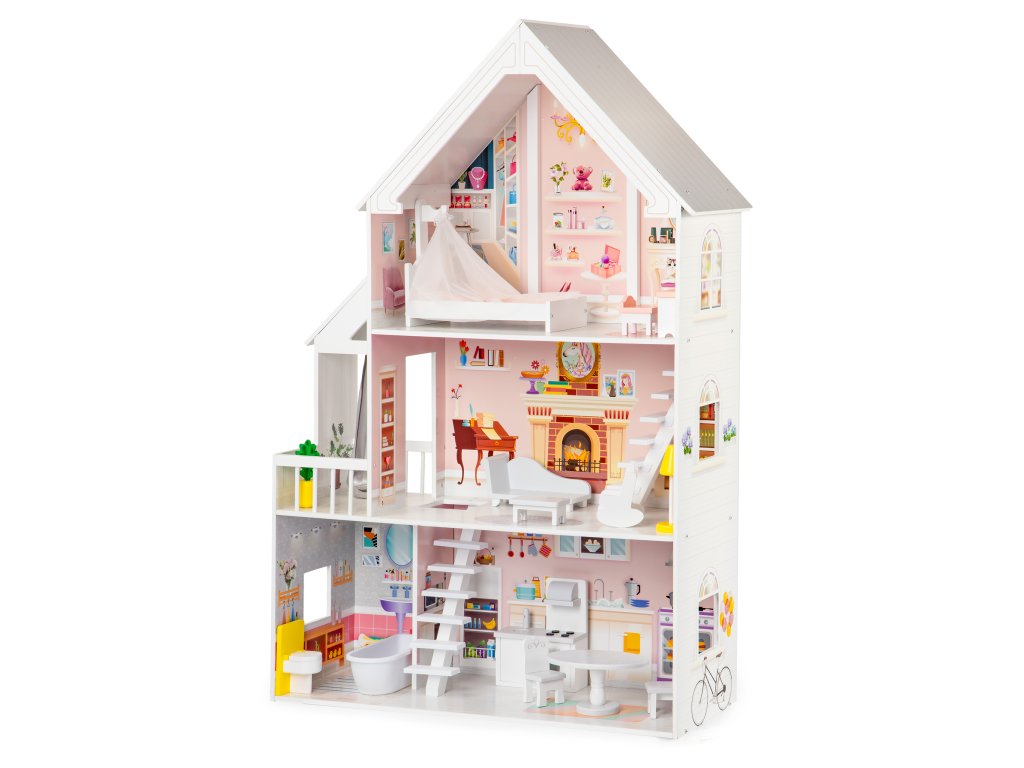 Domček pre bábiky od ECOTOYS vďačí za svoje čaro vhodne zvolenej farebnej schéme a špeciálne navrhnutým izbám. Vďaka tomu bude vyzerať skvele nielen v izbe vášho dieťaťa ale aj v obývacej izbe a potešila všetkých v dome.
