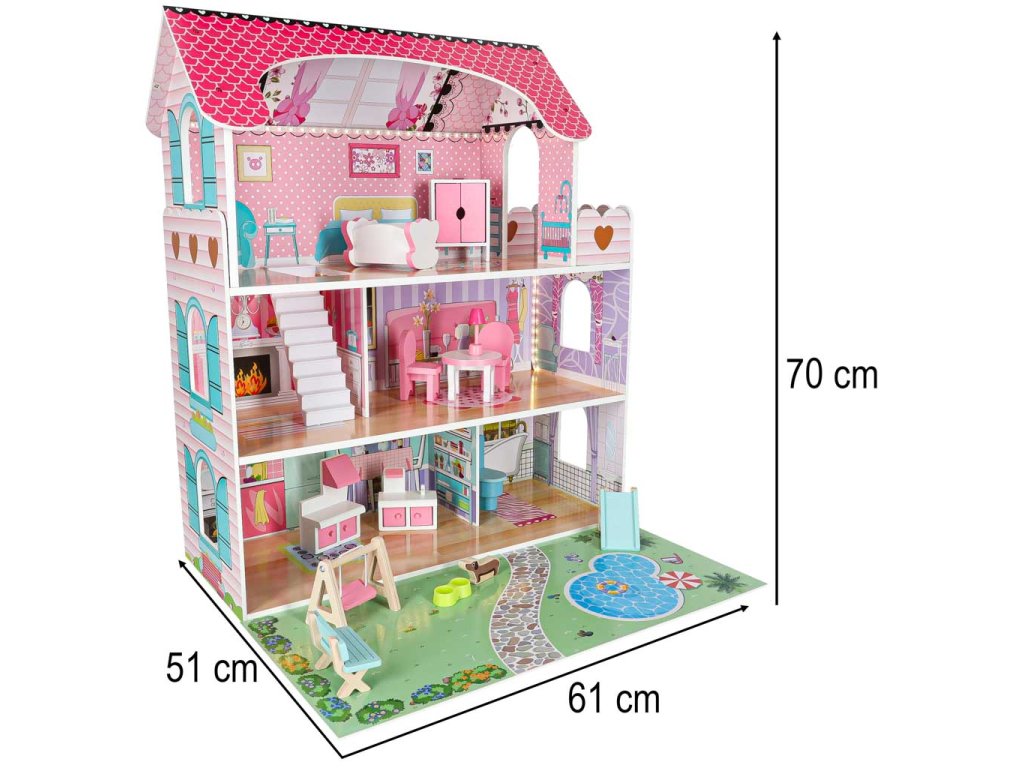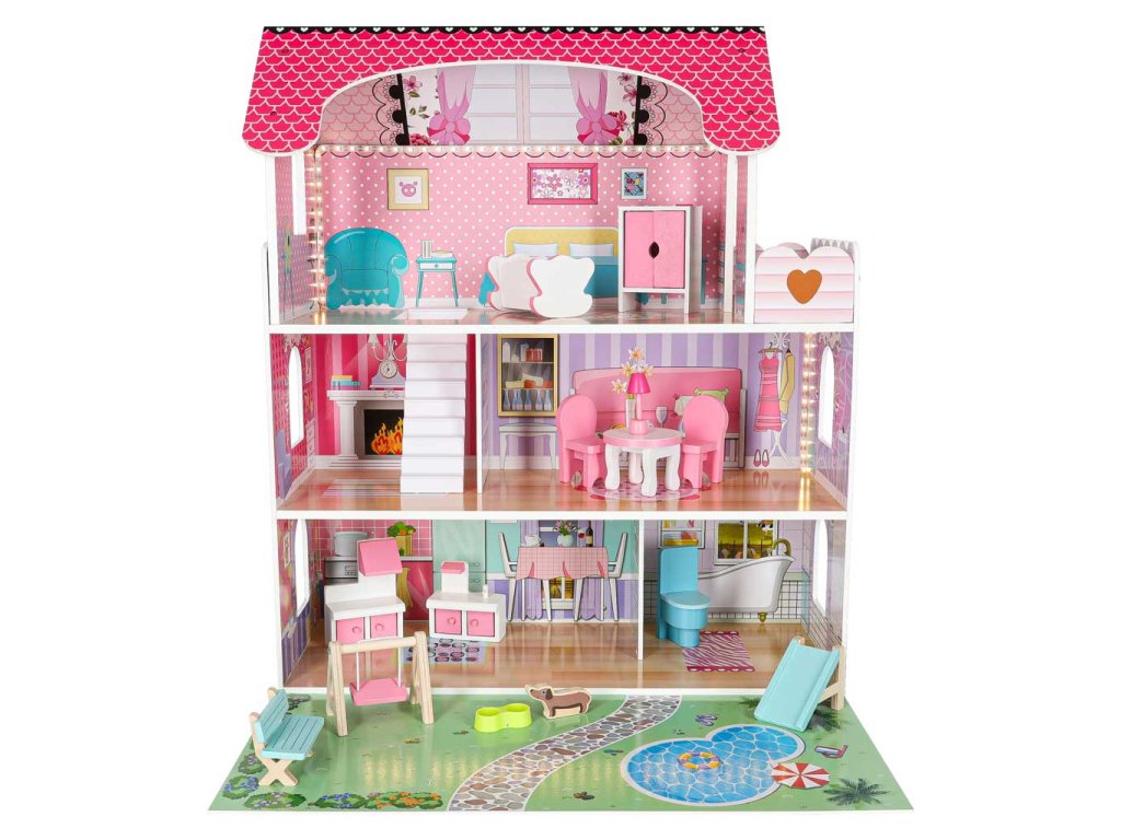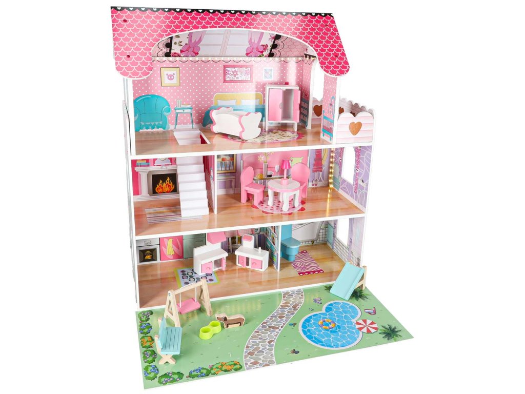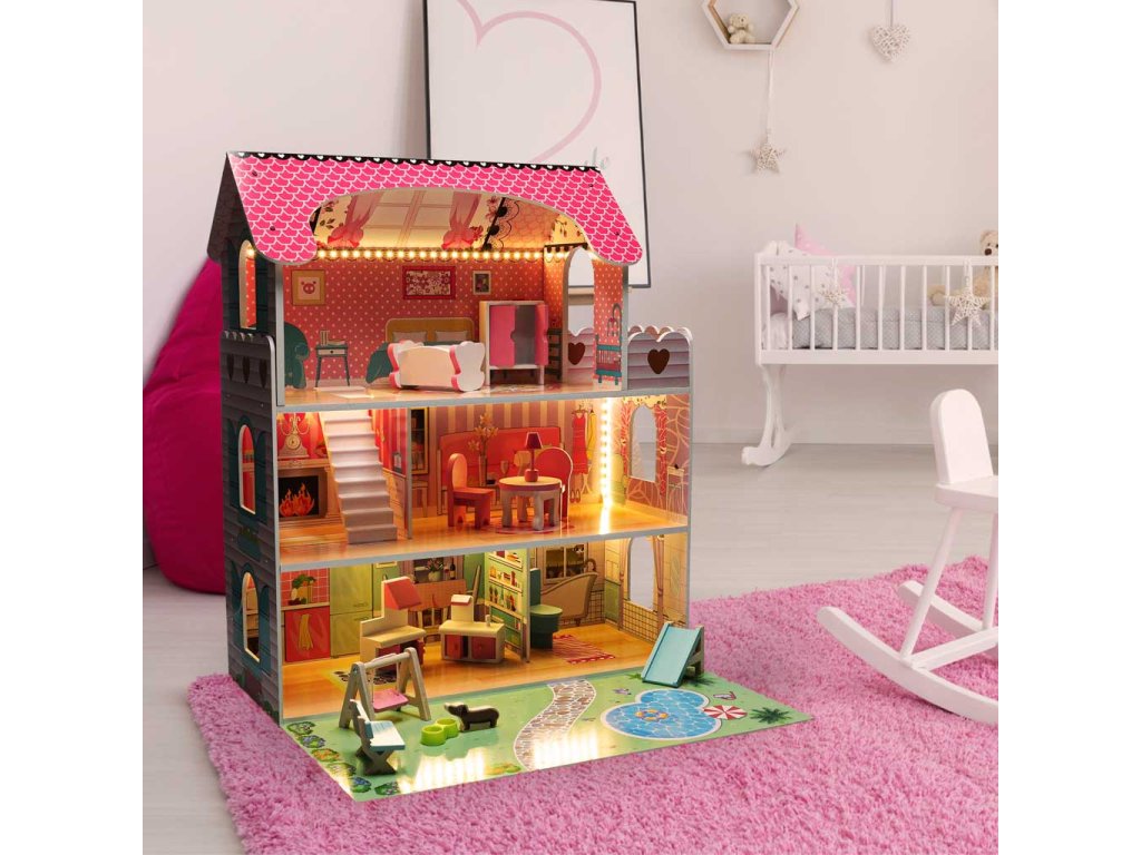 Lulilo Gardeno drevený domček pre bábiky so záhradným nábytkom 70 cm ružový LED