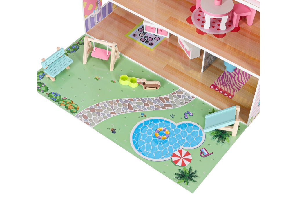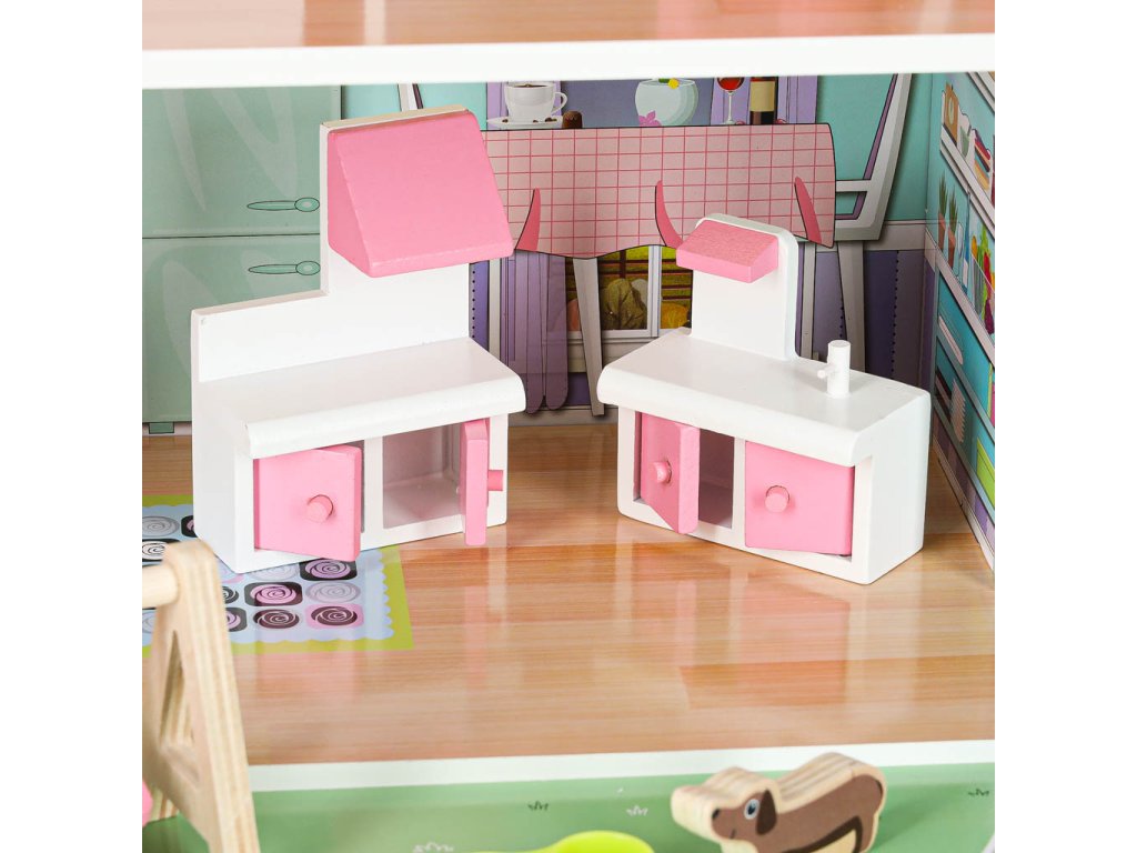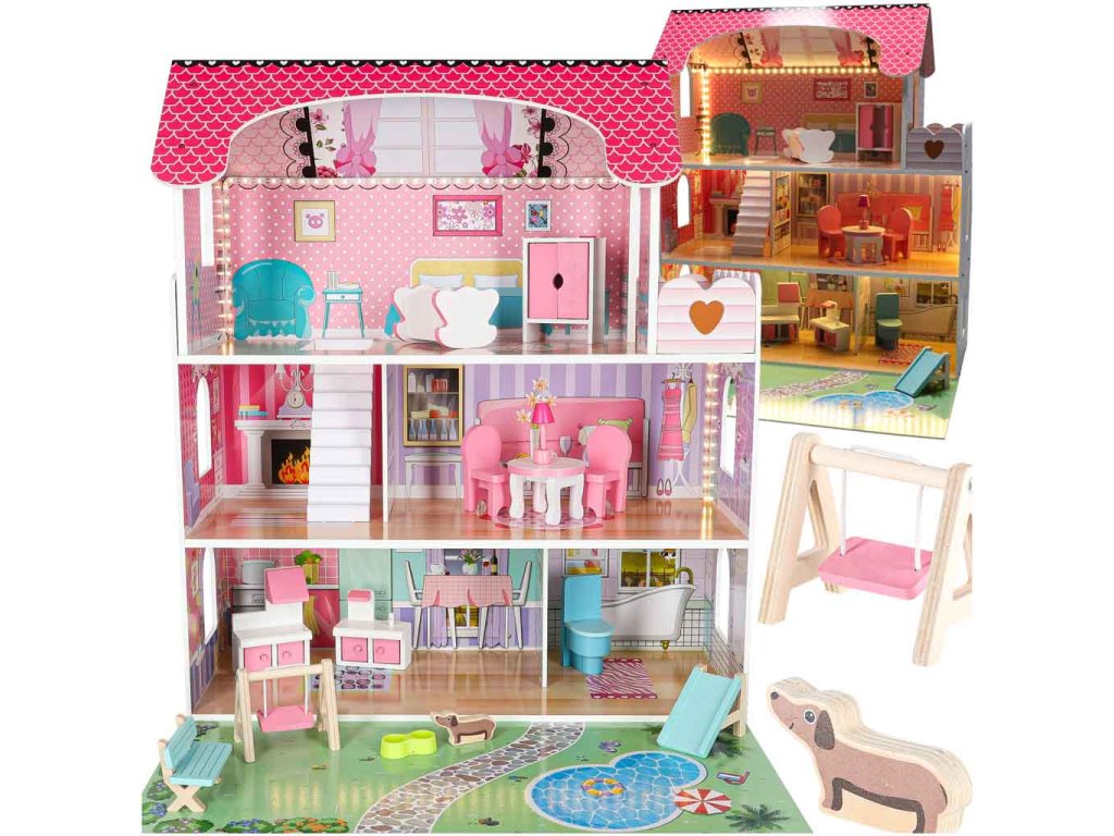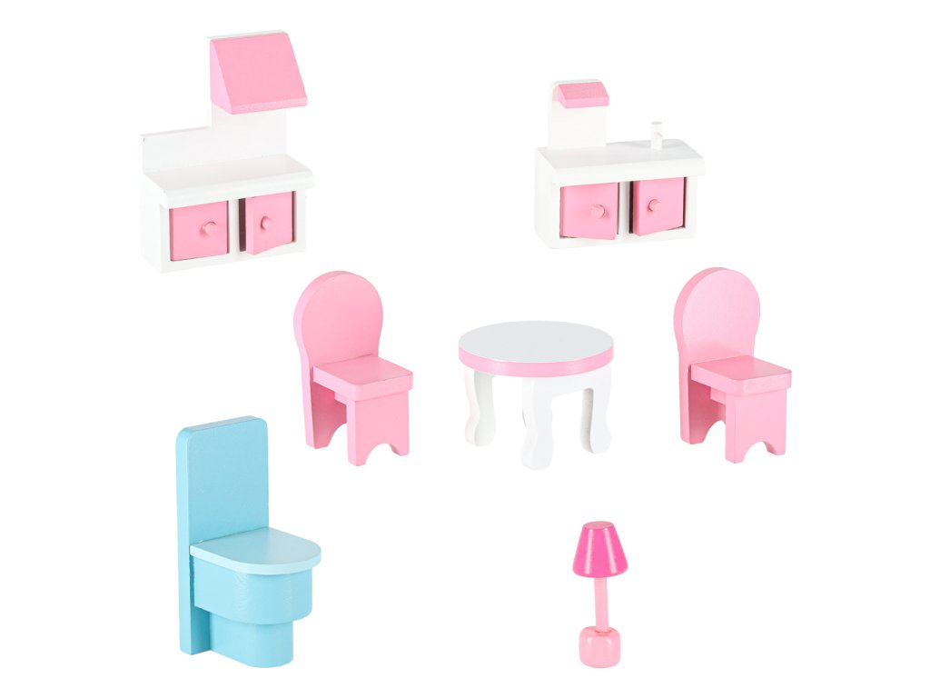 Lulilo Gardeno drevený domček pre bábiky so záhradným nábytkom 70 cm ružový LED