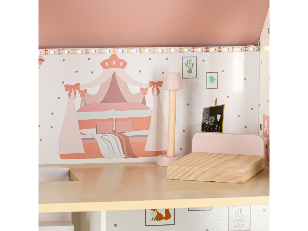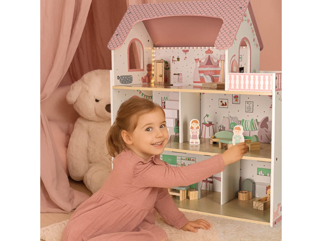 LULILO Peonio drevený domček pre bábiky 70cm LED ružový
