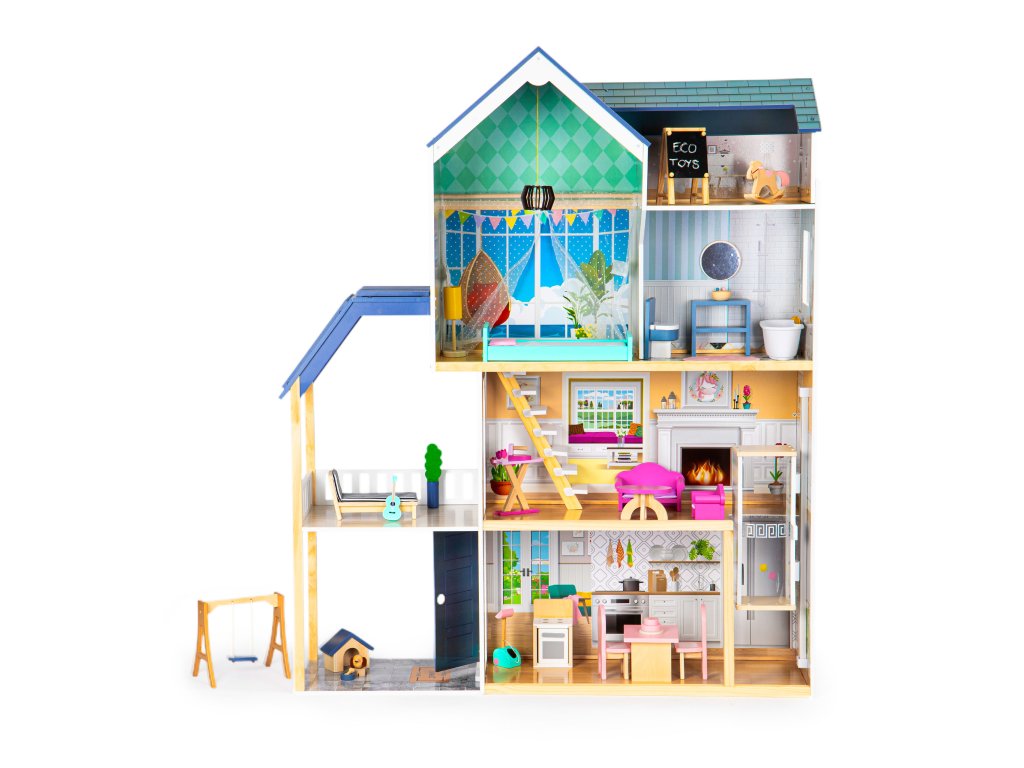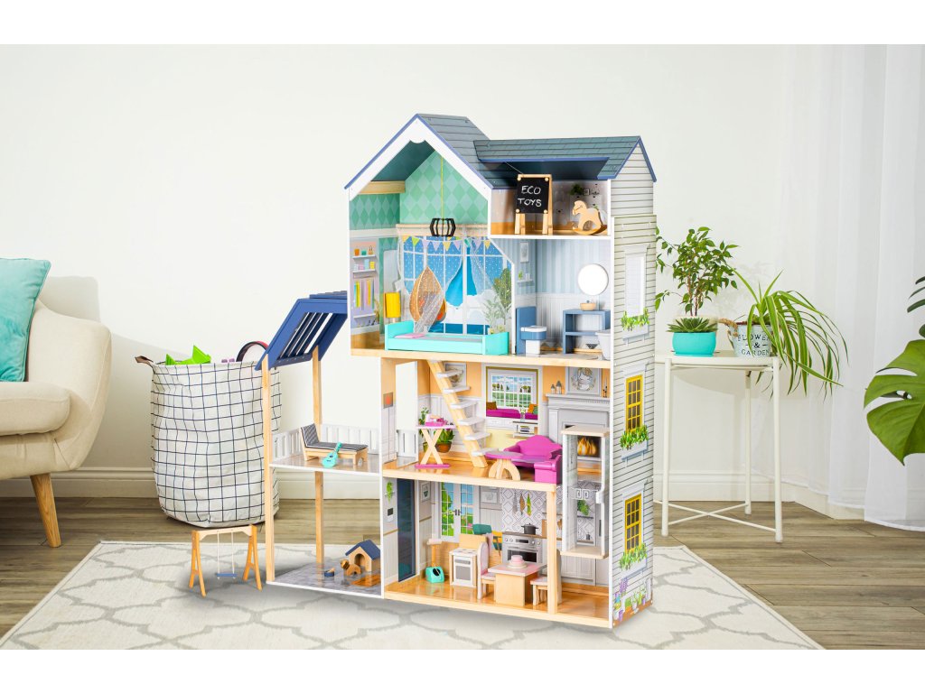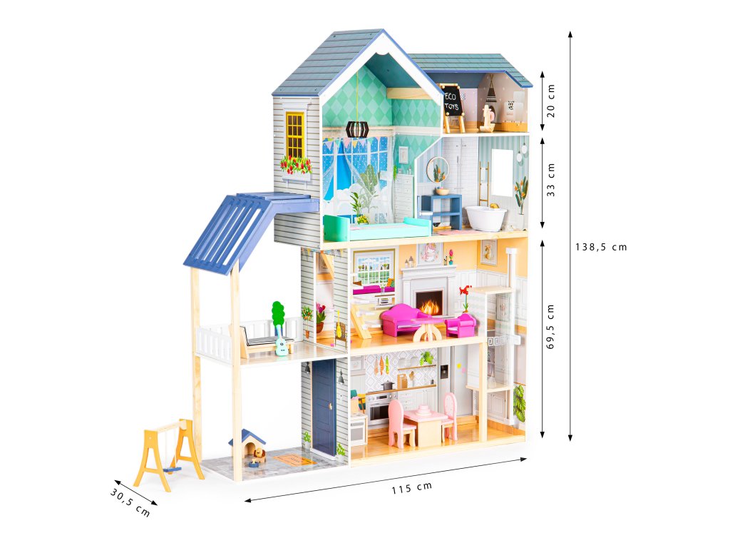 Veľký drevený domček pre bábiky Maya 138 cm, 28 dielov