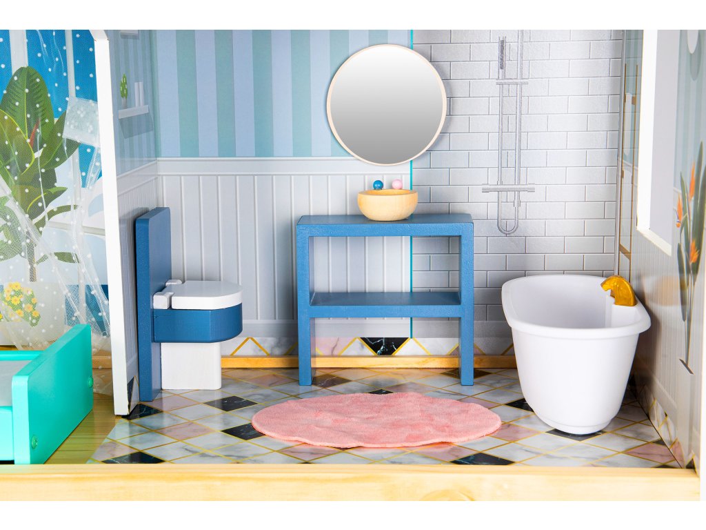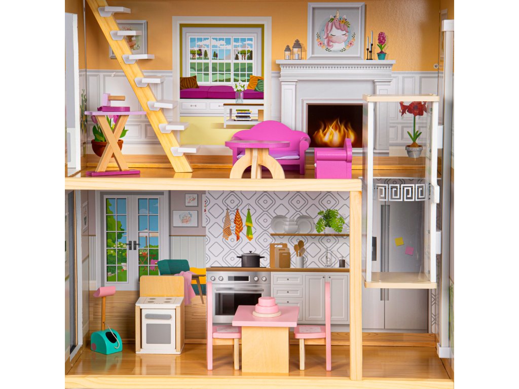Stačí chvíľa hry a vaše dieťa si ho zamiluje. Celý domček má 4 nezávislé úrovne, ktoré zahŕňajú celkovo 7 izieb vrátane terasy a krytého vchodu. Každá izba je zariadená v inom štýle, pričom výzdoba a nábytok zodpovedajú charakteru a účelu miestnosti. Nič však nebráni tomu, aby sa vaše dieťa hralo na interiérového dizajnéra a zariadilo si ho po svojom.