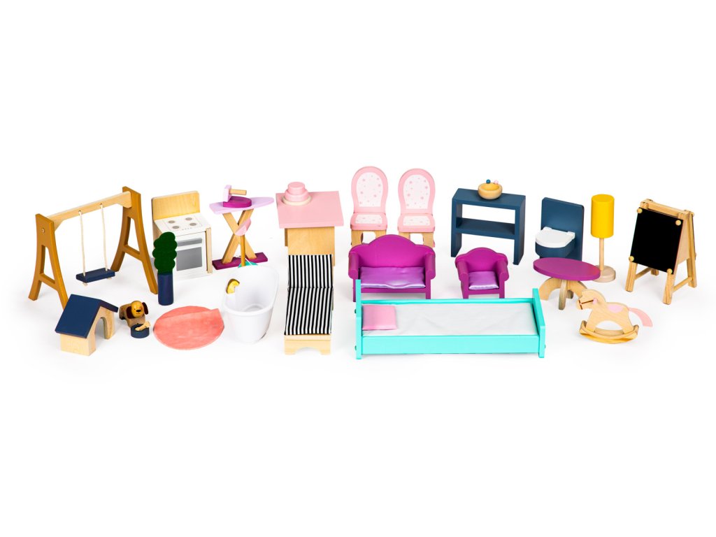 Súprava obsahuje aj sada 28 kusov dreveného nábytku a ďalšie predmety, ako je vysávač, gitara, zrkadlo alebo psia búda. Všetky prvky sa dajú ľubovoľne vyberať a premiestňovať bez akýchkoľvek obmedzení.