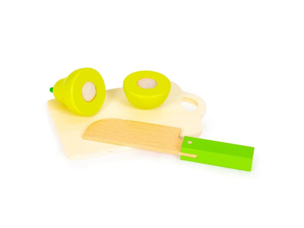 Najzaujímavejším prvkom tejto sady jemožnosť krájania zeleniny a ovocia dreveným nožom.Hračka sa skladá z polovíc spojených suchým zipsom, ktorý pri krájaní kladie jemný odpor avydáva zvuk krájania skutočného ovocia.V dôsledku toho deti rozvíjať ich motorické zručnosti a učiť osvojiť si základné zručnosti, ako napríklad používanie noža.