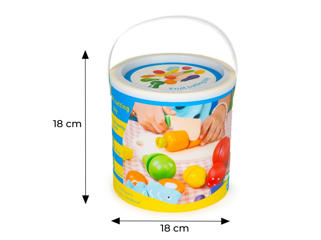 Drevená zelenina a ovocie na krájanie 13 kusov + vedro