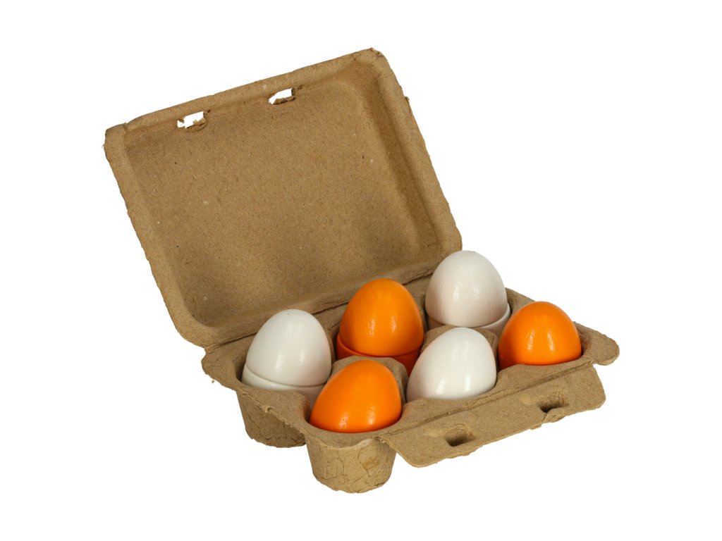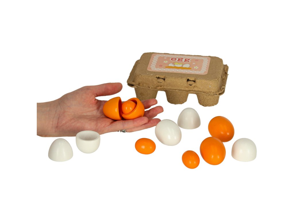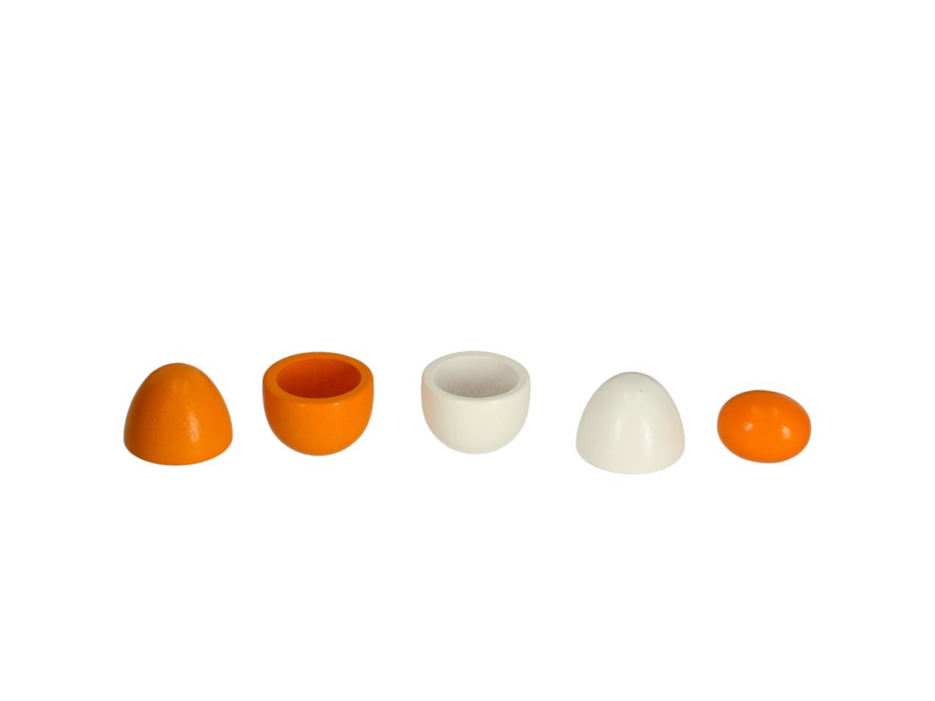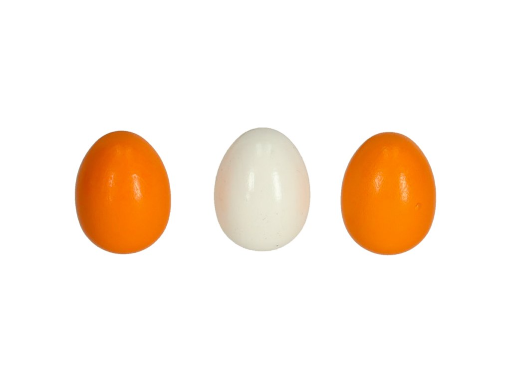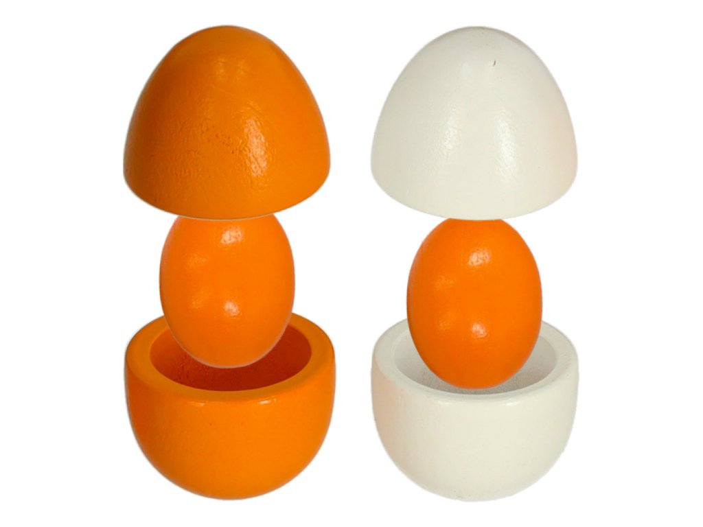 Drevené hracie vajíčka s vyberateľnými žĺtkami sú jedným zo základných potravinových výrobkov.