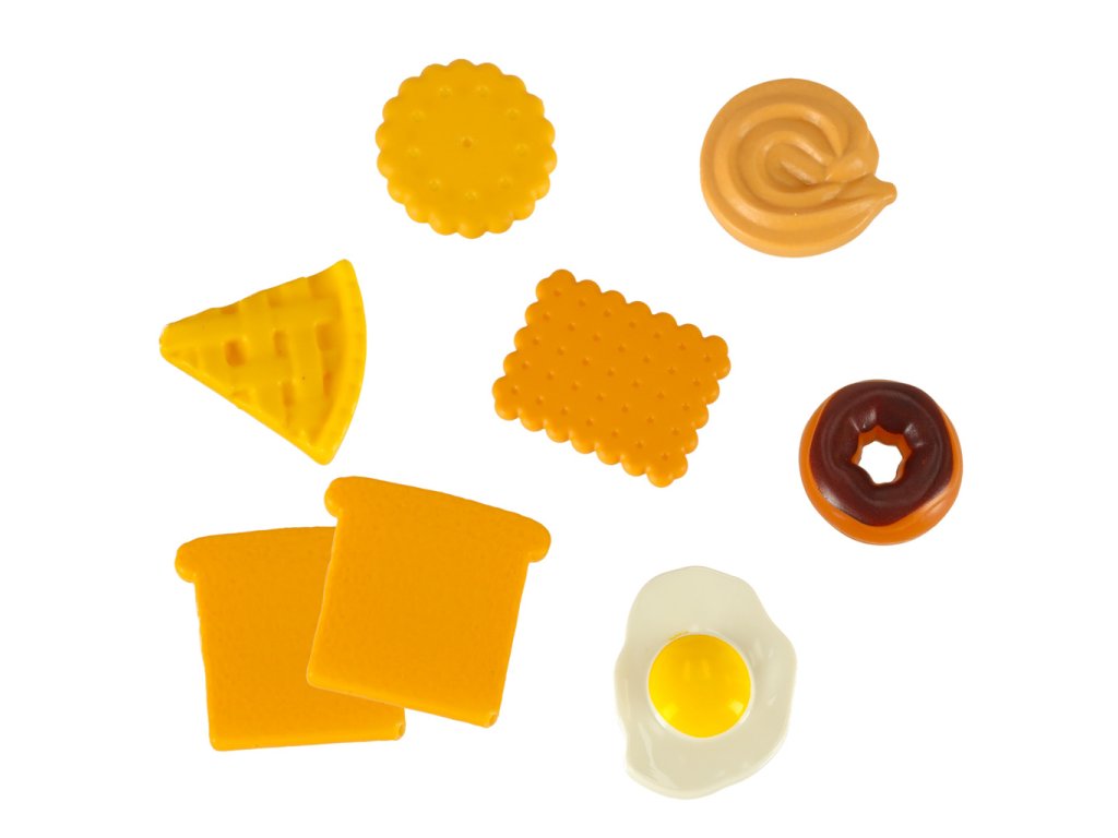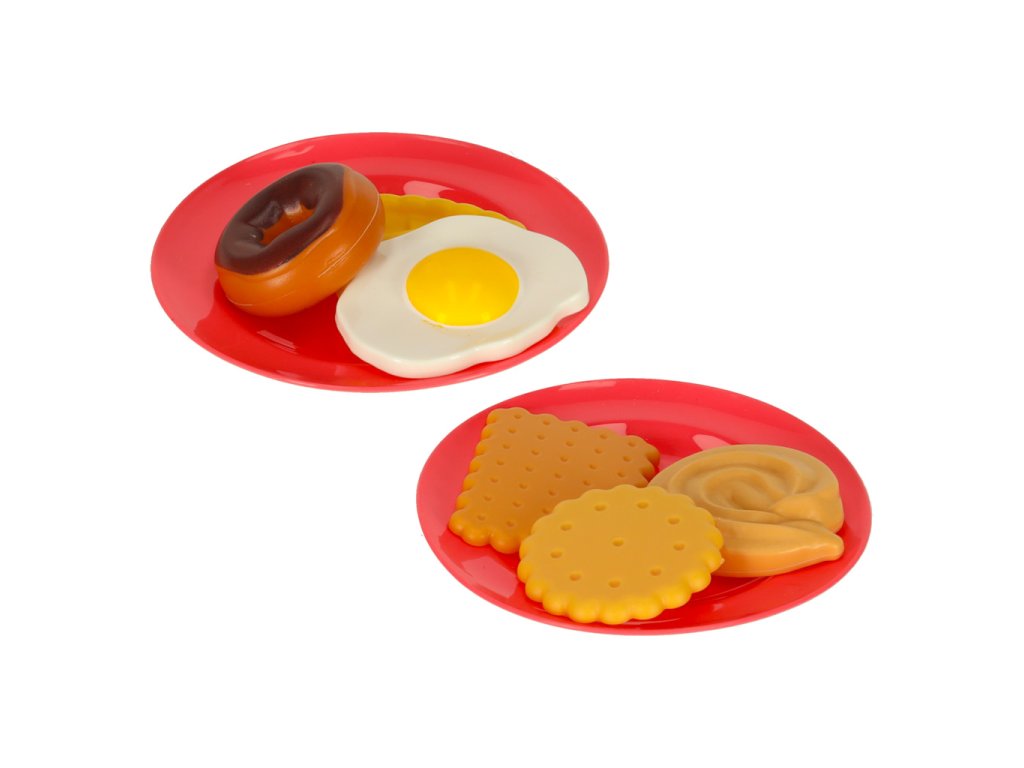 - Na tanier dajte miešané vajíčka, koláč a šišku.