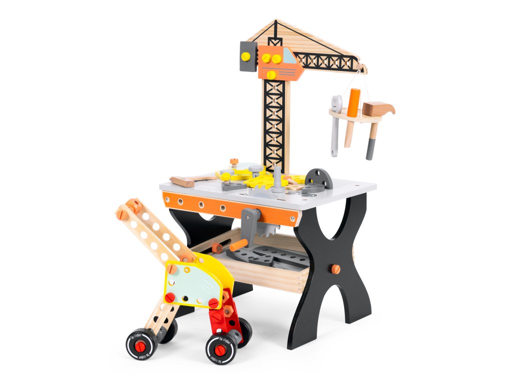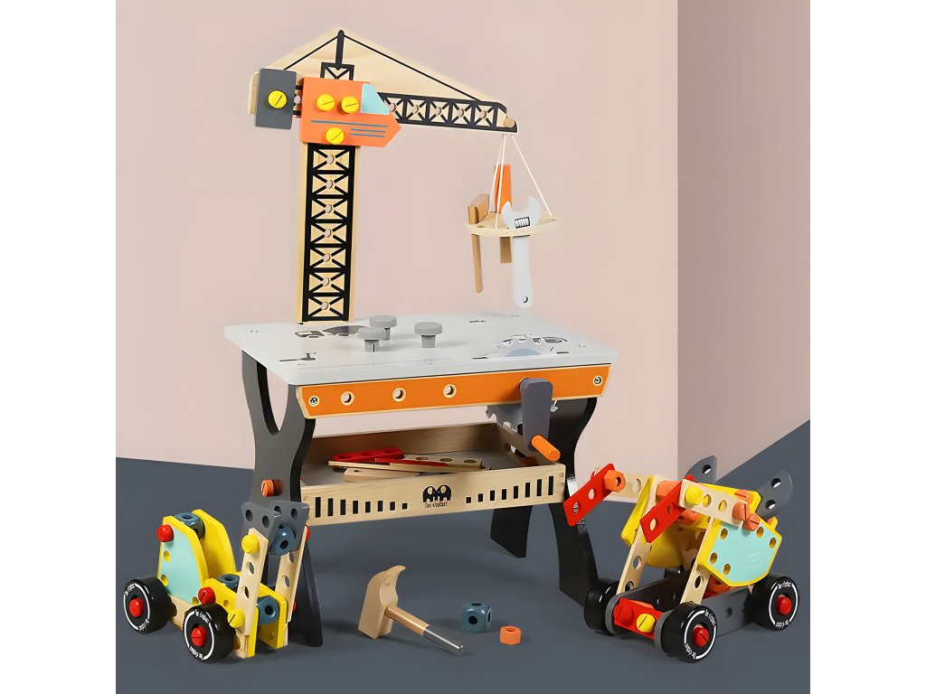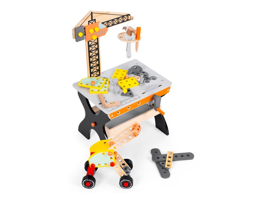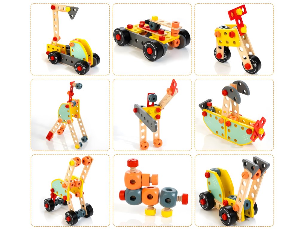 Spolu s workshopom k dispozícii sú ďalšie komponenty, takže vaše dieťa môže postaviť až 9 rôznych hračiek ako je robot, bicykel, loď a mnoho ďalších. Na ich zostavenie sú k dispozícii bezpečné drevené komponenty bez ostrých hrán a návod na použitie s nápadmi na nové konštrukcie. Týmto spôsobom bude batoľa schopné znovu vytvoriť alebo vytvárať úplne nové konštrukcie podľa vlastných predstáv.