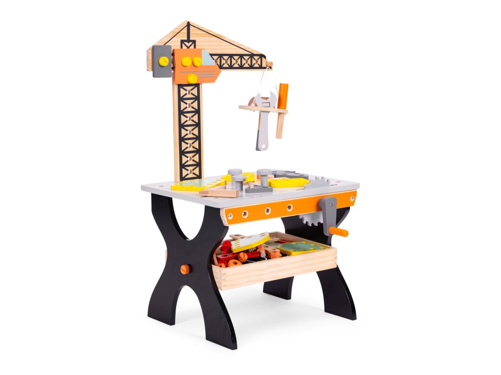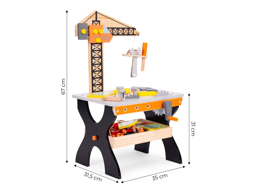 Každé dieťa rado pozoruje a napodobňuje konanie dospelých a s našou dielňou vaše dieťa prebudí svoju vlastnú lásku ku kutilstvu a tvorivosti. Naučte sa používať základné nástroje, naučiť sa zatĺkať a odstraňovať klince, uťahovať skrutky, používať kľúče, merať pomocou meracieho pásu a dokonca píliť drevo a to všetko s ohľadom na bezpečnosť.
