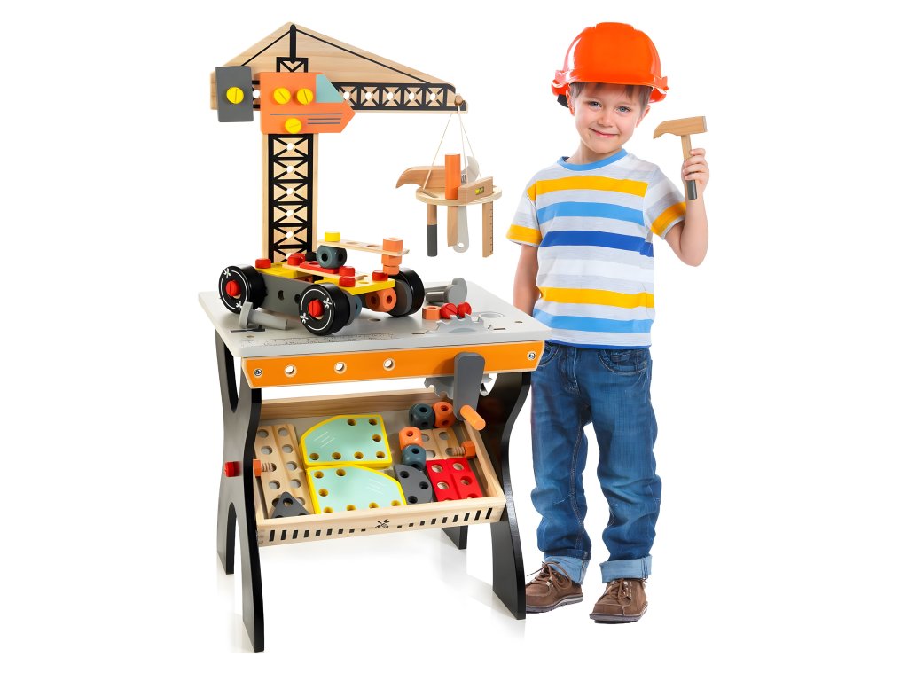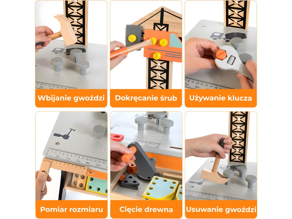 Používanie nástrojov a zostavovanie blokov rozvíja detskú motoriku, koordináciu rúk a očí, schopnosť riešiť problémy a stimuluje ich predstavivosť a kreativitu. Je to vynikajúca hračka, ktorá bezpečne podporuje rozvoj malých kutilov.
