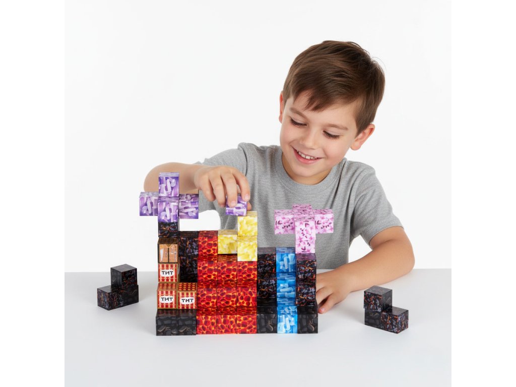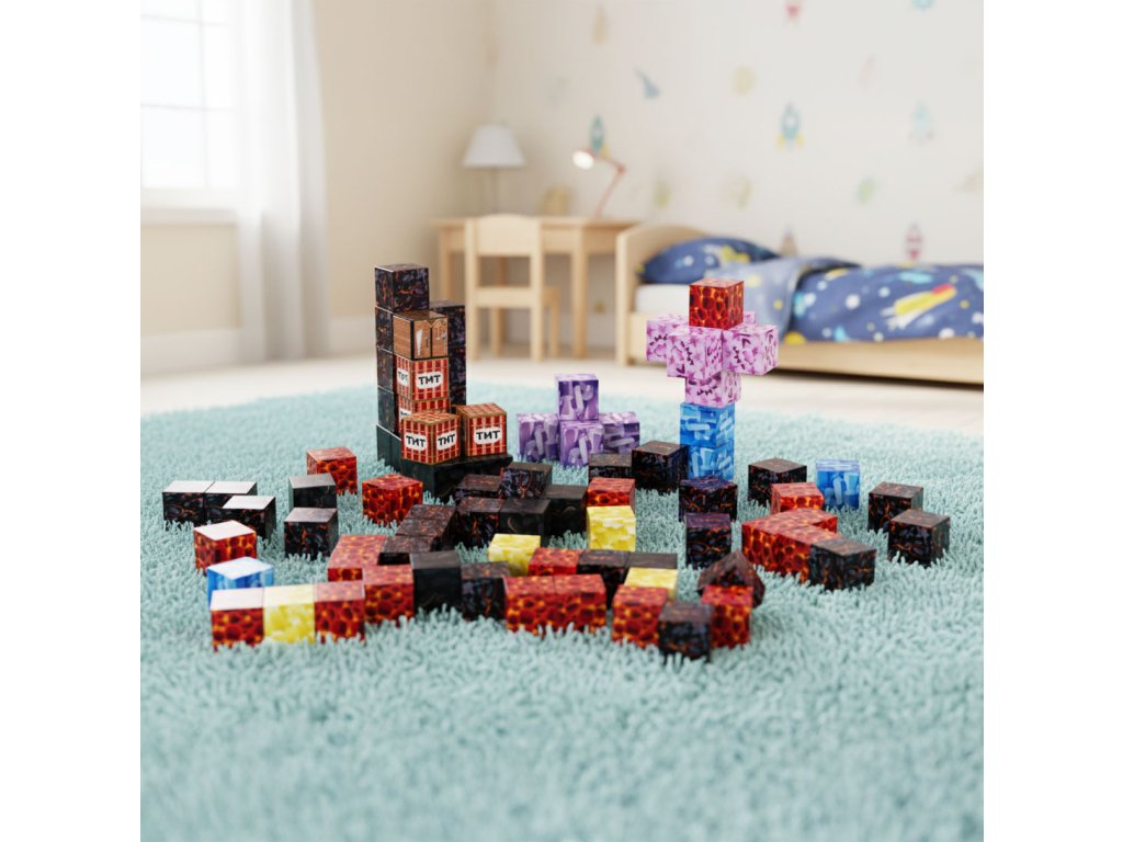 Kocky sú spojené zabudované magnety, ktoré spôsobujú, že sa prvky rýchlo a automaticky priťahujú. Je to jednoduché, intuitívna forma hry, čo deťom prináša uspokojenie a umožňuje im sústrediť sa na kreatívnu tvorbu.
