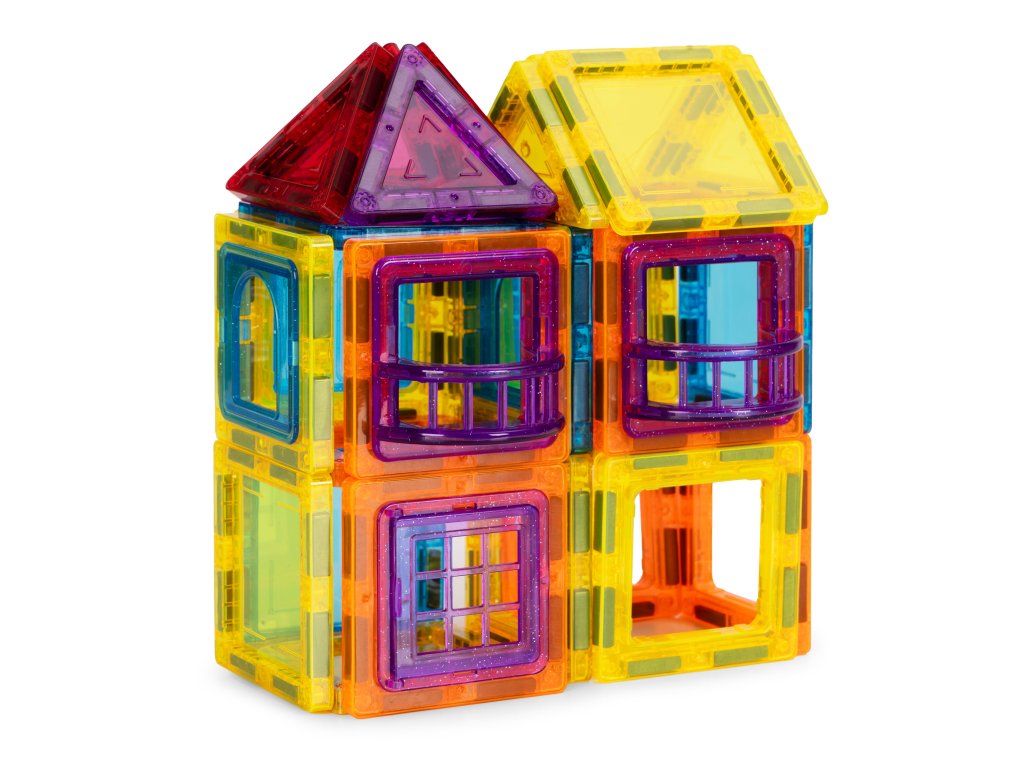 Táto sada magnetických blokov je ideálnou vývojovou hračkou; kreativita, logické myslenie a priestorová predstavivosť. Deti si môžu vytvoriť vlastné rôzne stavby - domy, veže, vozidlá a geometrické útvary. Je to hra, ktorá súčasne stimuluje zmysly podporuje manuálny vývoj a podporuje nezávislé experimentovanie. Súprava je vhodná na konštrukciu jednoduchých foriem aj zložitejších 3D projektov a poskytuje mnoho hodín inteligentná, pútavá hra.