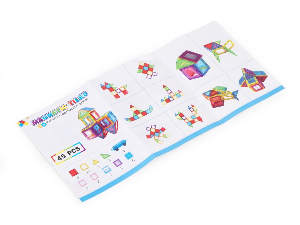 Magnetické stavebné kocky 45 ks – domček, autíčko (s predlohami)