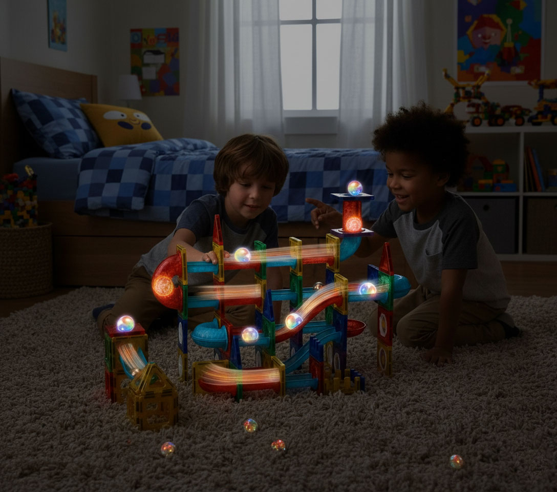 Táto sada magnetických blokov je ideálnou vývojovou hračkou;kreativita, logické myslenie a priestorová predstavivosť. Deti si môžu vytvoriť vlastnédynamické trasy s tunelmi a zjazdmia zároveň sa naučíte princípy fyziky a plánovania. Je to zábava a zároveňstimuluje zmyslypodporuje manuálny vývoj a podporuje nezávislé experimentovanie. Súprava je vhodná na konštrukciu jednoduchých foriem aj zložitejších 3D projektov a poskytuje mnoho hodín inteligentná, pútavá hra.