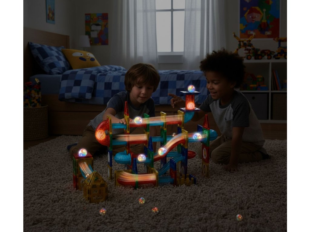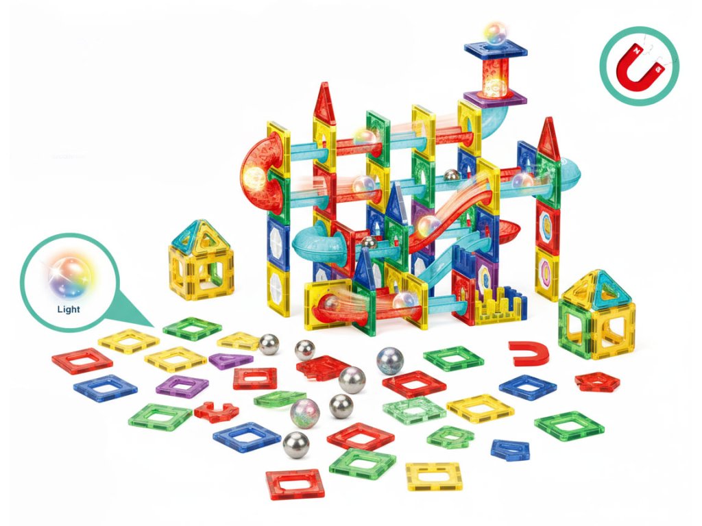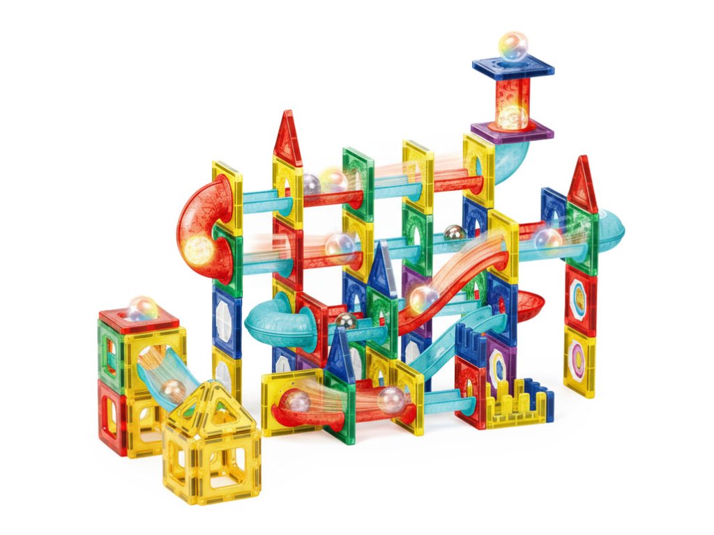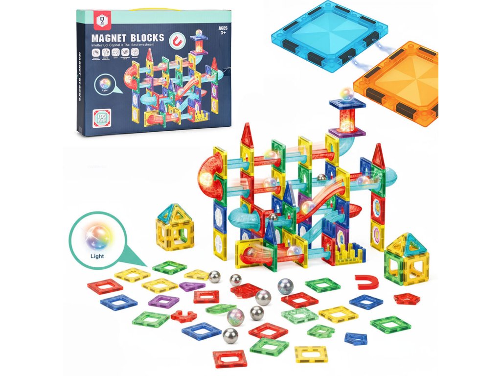 Magnetické bloky guľôčková dráha LED stavebné bloky culodrome 105 prvkov