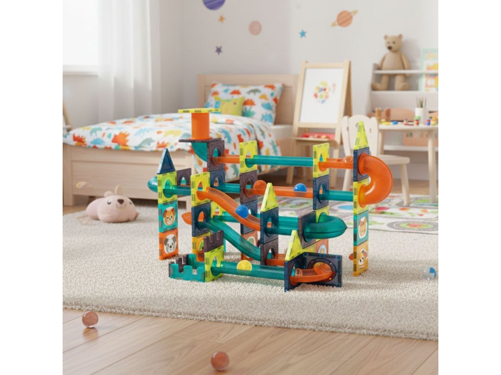 Táto sada magnetických blokov je ideálnou vývojovou hračkou;kreativita, logické myslenie a priestorová predstavivosť. Deti si môžu vytvoriť vlastnédynamické trasy s tunelmi a zjazdmia zároveň sa naučíte princípy fyziky a plánovania. Je to zábava a zároveňstimuluje zmyslypodporuje manuálny vývoj a podporuje nezávislé experimentovanie. Súprava je vhodná na konštrukciu jednoduchých foriem aj zložitejších 3D projektov a poskytuje mnoho hodín inteligentná, pútavá hra.