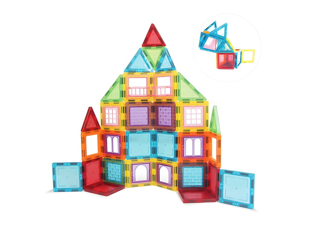 Táto sada magnetických blokov je ideálnou vývojovou hračkou;kreativita, logické myslenie a priestorová predstavivosť. Deti si môžu vytvoriť vlastnérôzne stavby - domy, veže, vozidlá a geometrické útvary. Je to hra, ktorá súčasnestimuluje zmyslypodporuje manuálny vývoj a podporuje nezávislé experimentovanie. Súprava je vhodná na konštrukciu jednoduchých foriem aj zložitejších 3D projektov a poskytuje mnoho hodín inteligentná, pútavá hra.