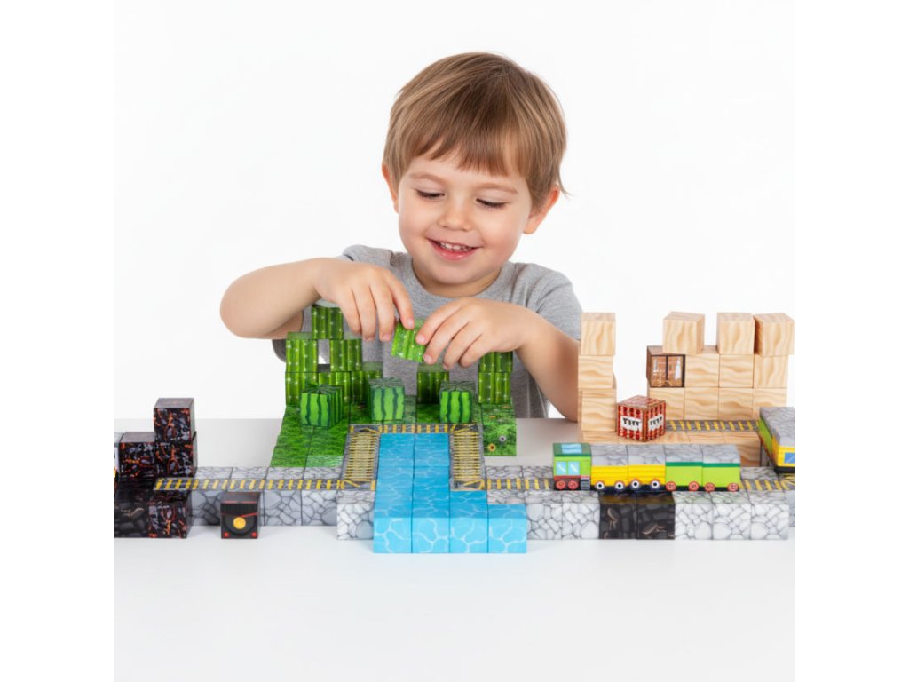 Kocky sú spojenézabudované magnety, ktoré spôsobujú, že sa prvky rýchlo a automaticky priťahujú. Je to jednoduché,intuitívna forma hry, čo deťom prináša uspokojenie a umožňuje im sústrediť sa na kreatívnu tvorbu.