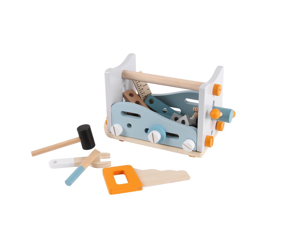 Okrem nástrojov nájdeme aj množstvo skrutiek, podložiek a drevených častí ktoré možno spojiť skrúťte a spojte. Vaše dieťa sa pri nej zabaví na celé hodiny!