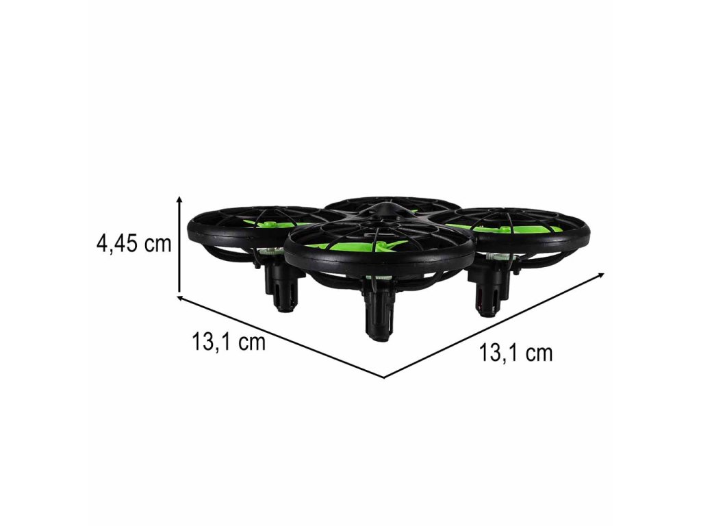 3,7V 380 mAh Li-poly batériaČas nabíjania: približne 90 minútDosah: približne 70 metrovČas letu: približne 6 minútRozmery balenia: 32,8 X 17,6 X 7,6 cmRozmery výrobku: 13,1 X 13,1 X 4,45 cmPilot: 2,4 GHz (potrebné 4 batérie AA)