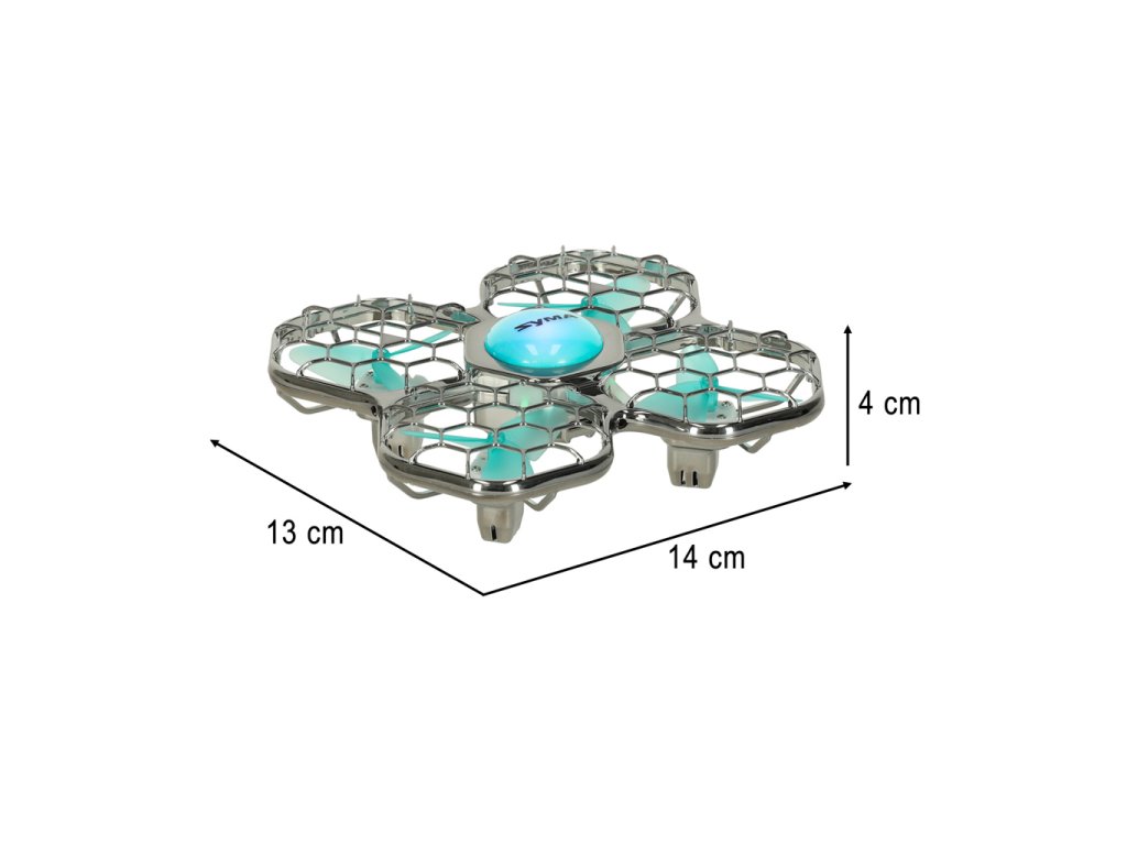 Kompaktný a ľahký - vďaka malým rozmerom je vrtuľník ideálny na hranie v interiéri aj exteriéri Pohodlné ovládanie pomocou joysticku - ergonomický diaľkový ovládač s kompaktnými rozmermi poskytuje pohodlné ovládanie aj mladším používateľom Napájanie z batérie - dron je vybavený 3.7 V 150 mAh, čo eliminuje potrebu jednorazových batérií a umožňuje viacnásobné dobíjanie Veľký priemer vrtule - zabezpečuje stabilnejší let a lepšiu kontrolu nad dronom počas hry Robustné spracovanie - odolný plast poskytuje trvanlivosť a odolnosť voči ľahkým pádom Dobre zladené proporcie - vhodne dimenzované vrtule a telo umožňujú plynulý, kontrolovaný let a jednoduché manévrovanie Jednoduchá obsluha - vďaka návodu v poľštine sa používateľ rýchlo naučí zariadenie ovládať a základy ovládania
