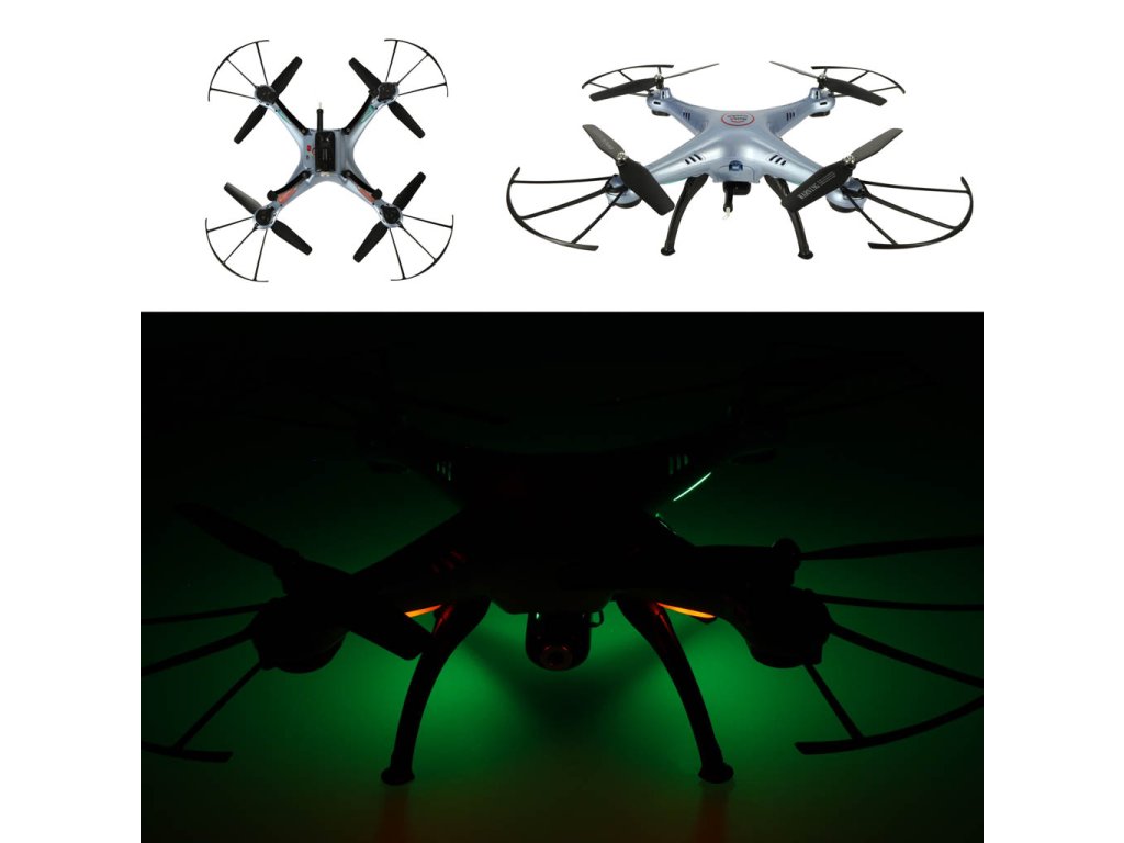 LED osvetlenie použité v modeli Syma X5HW nám umožňuje posúdiť polohu dronu vo vzduchu. Vďaka týmto rôznym farbám môžeme rozlíšiť, kde sa nachádza predná a zadná časť našej hračky. LED diódy umožňujú efektné lety v noci.