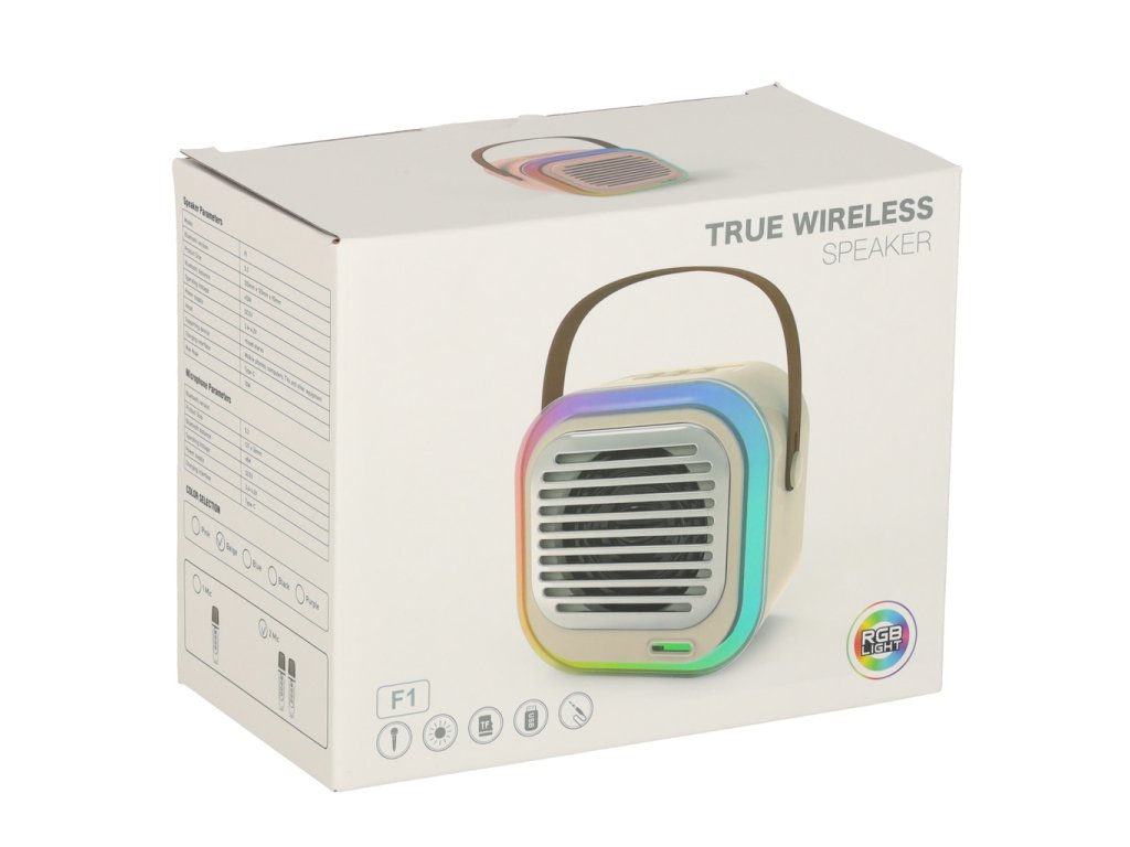 Vychutnajte si hudbu s reproduktorom F1! S výkonom 10 W a dosahom Bluetooth 12 m vám poskytne kvalitný zvuk. S mikrofónom a RGB svetlom je ideálny pre zábavu. Nabíjateľný cez USB C.