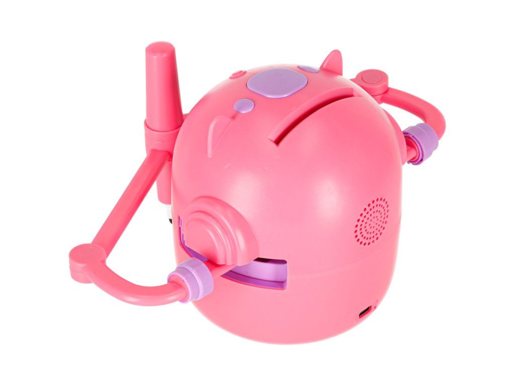 Vzhľad a farby: estetický kryt v ružových a fialových odtieňoch ● Odporúčaný vek dieťaťa: od 3 rokov ● Materiál konštrukcie: odolný plast so zabudovanými elektronickými prvkami ● Hmotnosť zariadenia: 518 g - ľahké, pohodlné prenášanie ● Základňa: stabilná, gumová, s protišmykovou úpravou ● Zdroj energie: lítiová batéria s kapacitou 2400 mAh ● Systém nabíjania: 4,2 V USB kábel (súčasťou balenia) ● Spotrebaenergie: 5 W - energeticky úsporná prevádzka ● Kresliaci marker (rozmery: 9 × 1 cm) možno neskôr zakúpiť online Veľkosť robota: ● celková výška: 12,5 cm ● bez ramien: 12,5 × 11 cm ● s ramenami: ● balenie: farebná kartónová škatuľa s rozmermi: 12,5 × 21 cm Ideálna na darček: 18 × 20 × 13,5 cm.