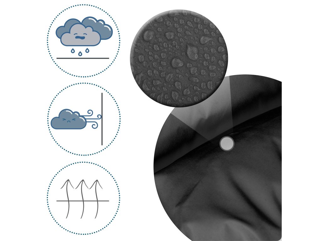 Vrchná vrstva, ktorá zaručuje úplnú nepremokavú a vetruvzdornú ochranu.