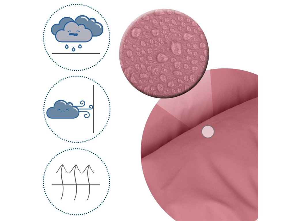 - Vrchná vrstva, ktorá zaručuje úplnú nepremokavú a vetruvzdornú ochranu.