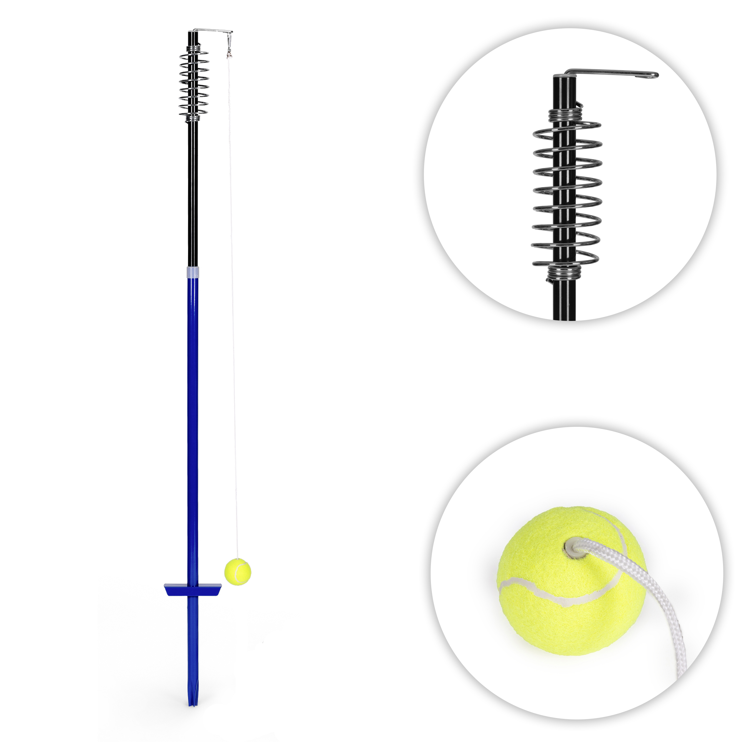 Sprężyna pochłania część energii uderzenia rakietką, ograniczając gwałtowne szarpnięcia linki i zapewniając płynniejszy ruch piłki. Dzięki temu odbicia są bardziej kontrolowane, a zestaw lepiej reaguje na siłę uderzeń. Rozwiązanie to zwiększa komfort gry oraz wspiera rozwój koordynacji ruchowej i precyzji.