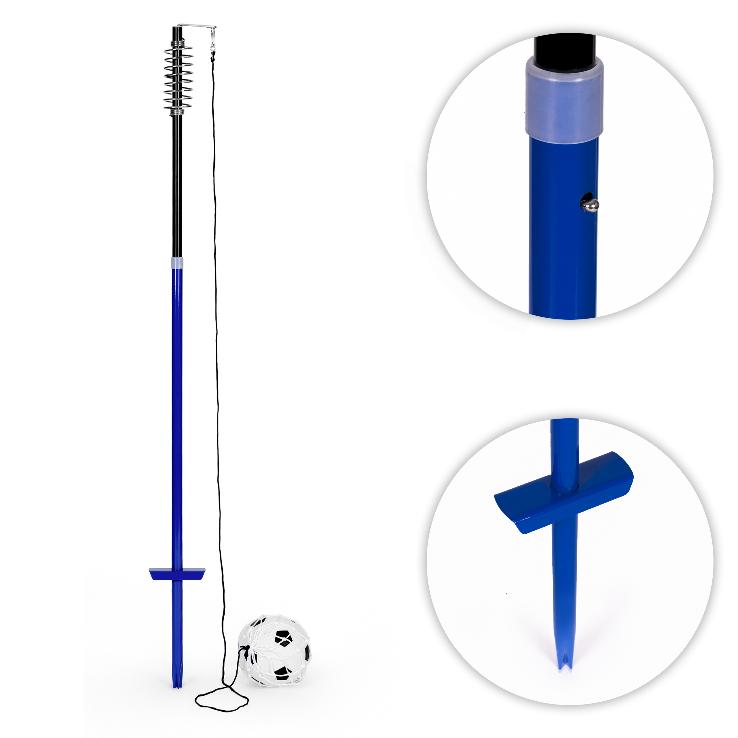 Sprężyna pochłania część energii uderzenia, ograniczając gwałtowne szarpnięcia i zapewniając płynniejszą pracę zestawu. Dzięki temu ruch piłki jest bardziej kontrolowany, a całość lepiej reaguje na siłę kopnięcia. Rozwiązanie to zwiększa komfort treningu oraz wspiera rozwój koordynacji i kontroli nad piłką.