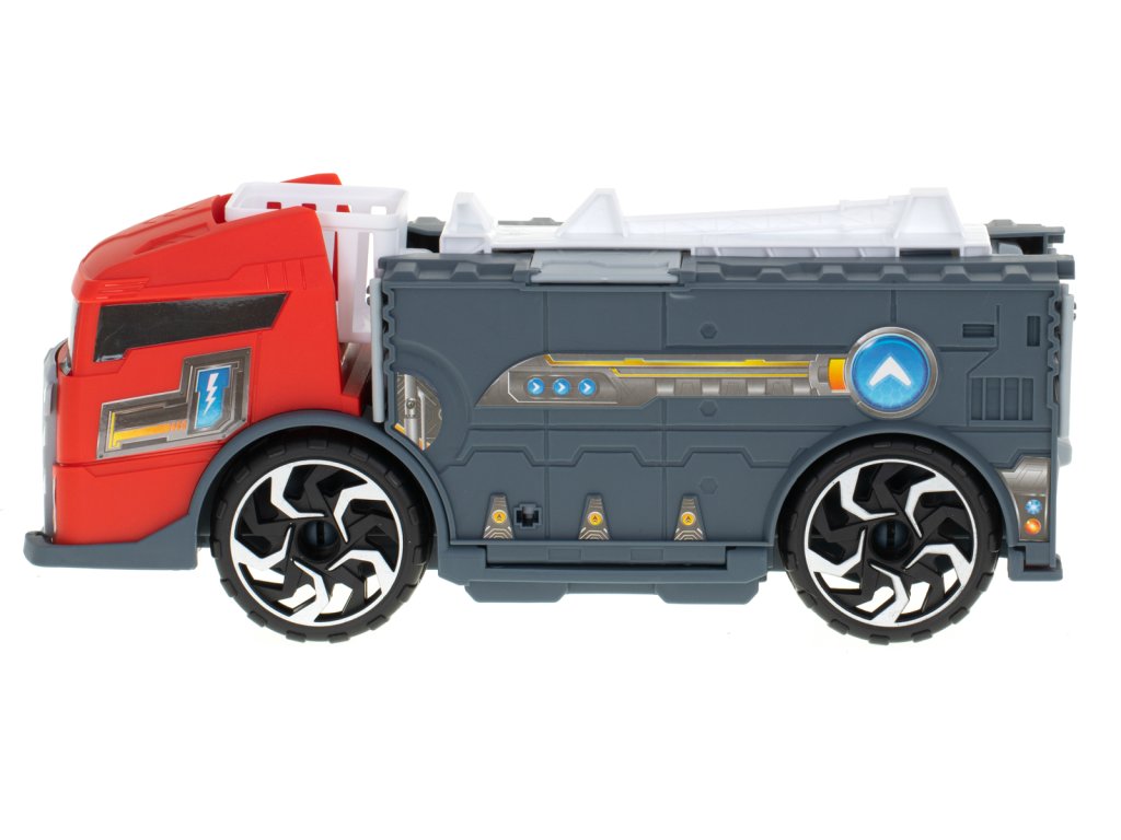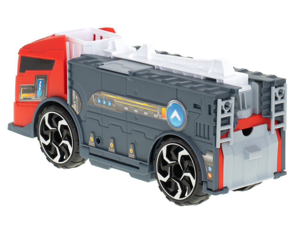 TRANSPORTÉR NÁKLADNÉ AUTO 2V1 PARKOVACÍ PRÍVES Nehoda? Oheň?Tieto úlohy zvládnu statoční hasiči so svojou ťažkou technikou. Na miesto činu dorazia v nákladnom aute. Veľký dopravný prostriedok v podobe hasičského vozidla, ktorý môže na svojej palube prepravovať pripojené vozidlá.Do prepravného vozidla sa nastupuje cez rampu v zadnej časti a vystupuje cez rám v prednej časti vozidla.Rebrík je pohyblivý a na palube transportéra je benzínová stanica s dvoma výdajnými stojanmi. Hra s autíčkami je všestranný spôsob trávenia času a môžu sa s nimi hrať malé aj väčšie deti.