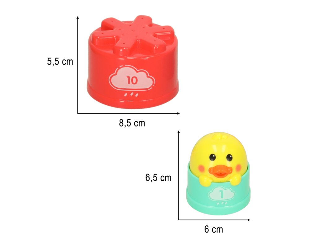 Hrnčeky sú skvelé nielen na kúpanie, ale aj ako hračka na pieskovisku alebo na pláži. Okrem toho možno súpravu použiť na výučbu čísel zábavným a kreatívnym spôsobom.