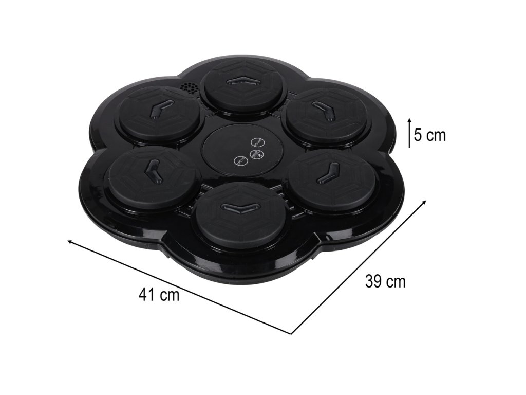 - Vek: 8+- Plast: ABS- Farba: čierna - Rozmeryciferníka: 41 x 39 x 5 cm- Početzásahových bodov: 1: 6- USB kábel: 100 cm- Skórovanie: - Svetelné efekty: áno- Hudba: áno, nastaviteľná- Bluetooth: áno - prehrávanie z telefónu- Úrovnerýchlosti: 9- Napájanie: batéria 3,7 V 1200 mAh- Hmotnosť disku: 1,5 kg: Hmotno sť s kartónom: 1,2 kg- Hmotnosť s kartónom: 1,2 kg 1.4 kg- Carton dimensions: Rozmery: 41 x 39 x 6,5 cm