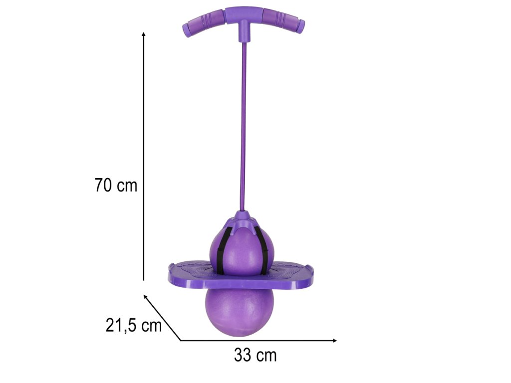 - Technické špecifikácie: - Vek: 6+- Farba: fialová- Plast: TPE + PP- Maximálne zaťaženie: 100 kg- Typ hračky: Pružinové skákadlo / balančné skákadlo- Použitie: Hračka na záhradu a do domácnosti- Celková výška hračky: 70 cm, max. 91 cm- Rozmery základne (dosky): 70 cm, max: 21,5 × 33 cm- Rozmery lopty: 23 × 14 cm- Protišmykový povrch: Áno - zabraňuje pošmyknutiu nôh- Držadlá: Mäkké, protišmykové penové držadlá- Stabilita: Zosilnená základňa pre väčšiu bezpečnosť.