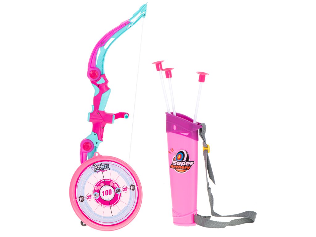 Luk so šípmi a terčom ružovej farby