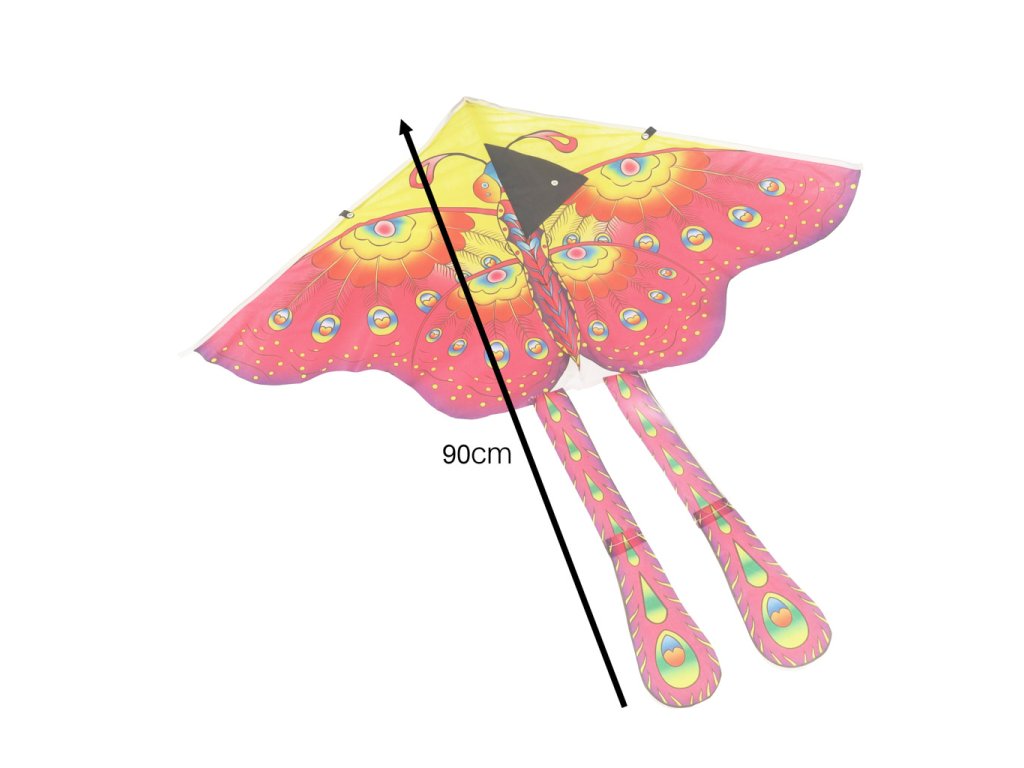 Veľký farebný motýľí drak s nylonovým telom a silným lanom je dokonalý na spoločnú zábavu vonku. S detailnou výrobou a ľahkou konštrukciou je ideálny pre celú rodinu. Rozmery: 90x48 cm. Zaručená radosť pre vaše dieťa!
