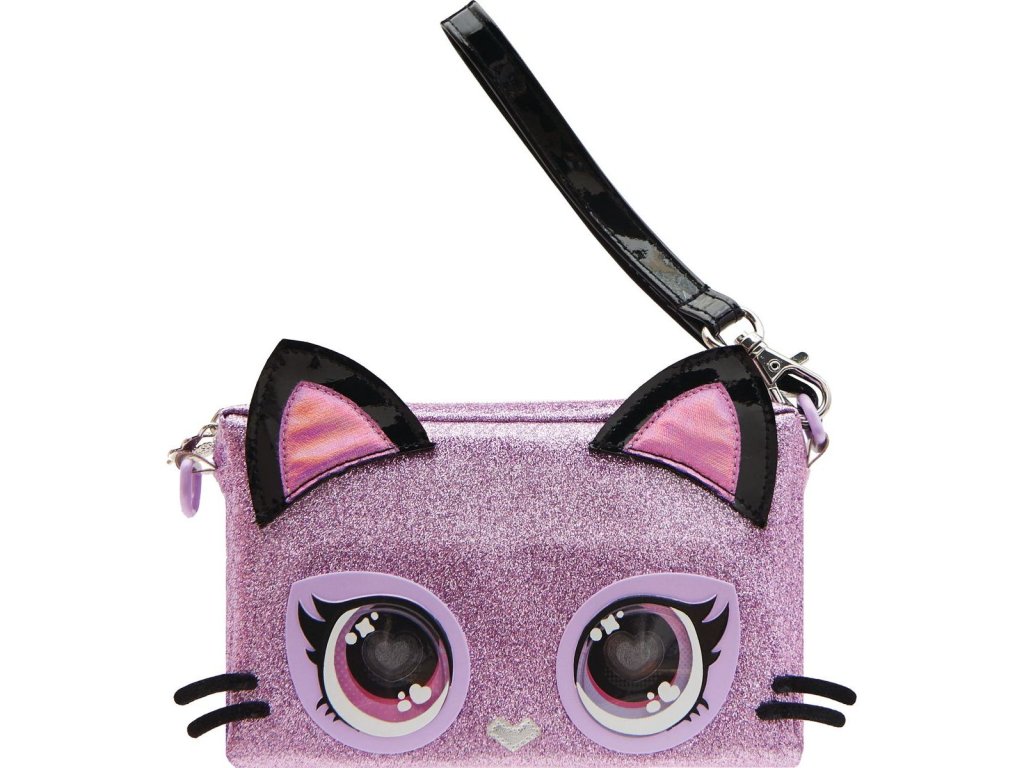 Tieto tašky (dokonalé darčeky) obsahujú trblietky a žiarivé oči. Na cestách ťuknite na nos Purdy Purrfectovej a vyberte si farbu očí, ktorá zodpovedá vašej nálade alebo outfitu, alebo jej ťuknite na nos a jej oči prejdú farbami dúhy. Ak chcete získať viac spôsobov, ako hrať, stlačte a podržte jej nos, aby ste vstúpili do režimu Lovestruck a sledovali, ako jej oči žiaria ružovo. Purdy Purrfect má hladkú fialovú trblietavú látku, metalické fialové a čierne mačiatkové uši, oči inšpirované pop artom a kovový zips. Pripnite 33 cm dlhý popruh na koniec tašky, aby ste mohli nosiť svoju novú kabelku Pets BFF v slučke okolo zápästia, alebo si ho pripnite a natiahnite popruh cez tašku, aby ste mohli nosiť Purdy Purrfect ako roztomilú kabelku. Rozmery približne 7,5 cm (V) x 15 cm (Š) x 2,5 cm (H). Výrazné očká svietia, ale nežmurkajú a taška mlčí. Interaktívne hračky Peňaženka Pets pre deti sú skvelými darčekmi k narodeninám, darčekom na špeciálne príležitosti, kalendárom alebo len tak na akúkoľvek príležitosť. Podčiarknite svoj vzhľad s kabelkou Purdy Purrfect na zápästie Peňaženka Pets.
